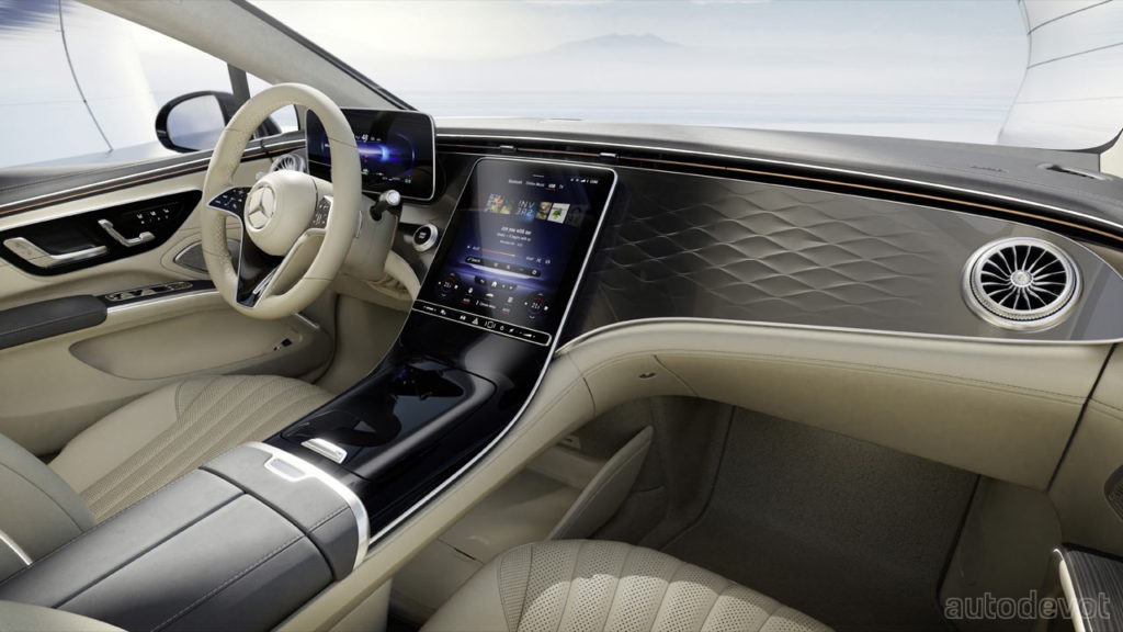 As we can see, there’ll be different options for the interior with regards to the displays and the materials. Those who don’t want to go ‘Hyper’, can get a set-up similar to the S-Class. Mercedes says that more than 40 new inventions have found their way into EQS.