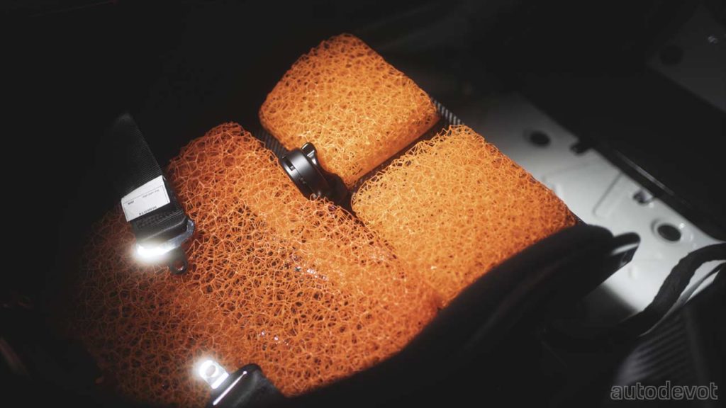 That said, it’s a safety car and it needs to be LOUD with orange and yellow colors. Which is why there are fat wheel arches, side skirts, a front lip spoiler, a rear wing and a massive rear diffuser. Some of these elements are 3D-printed from recycled carbon fibre. Adding to the drama are the lightweight 18-inch forged rims painted in black-neon and orange dual-tone. The rims are wrapped in Michelin Pilot Sport tyres (245/40 R18), the same ones fitted to the front of Formula E racing cars.