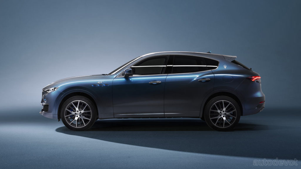 The Levante Hybrid gets the same, minor visual tweaks as the Ghibli Hybrid, such as blue accents on the fender outlets, blue-painted calipers, and a new boomerang-shaped taillight signature. Also, there’s a new metallic tri-coat colour called Azzurro Astro, available as part of the brand’s customisation programme called ‘Maserati Fuoriserie’.