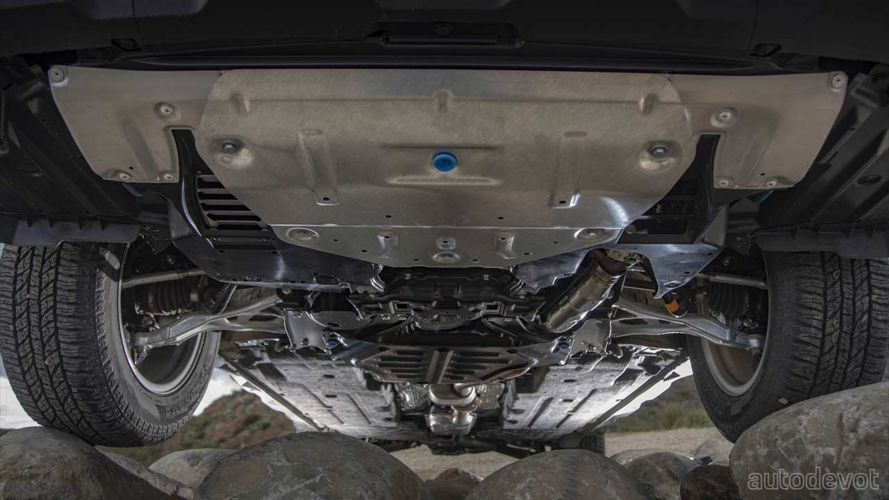 The redesigned front and rear bumpers offer better approach, breakover and departure angles of 20.0-, 21.2- and 23.6-degrees, respectively. Also, as mentioned, the Wilderness offers 9.5-inches of ground clearance, which is an inch more than the standard model. This was achieved by increasing the length of the front and rear shock absorbers and springs.