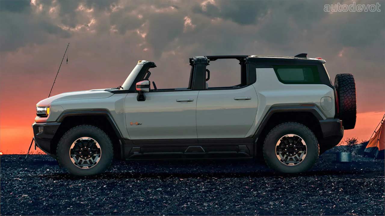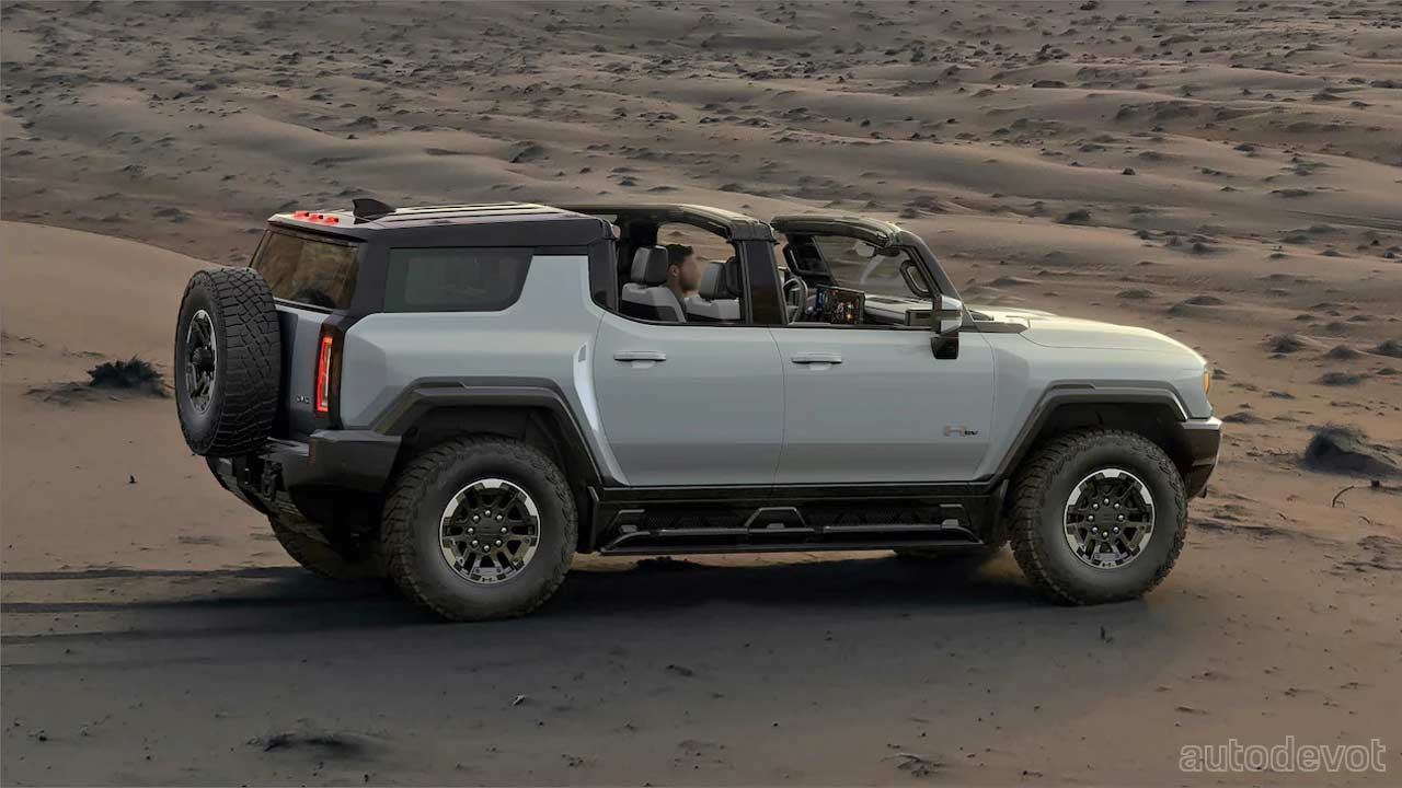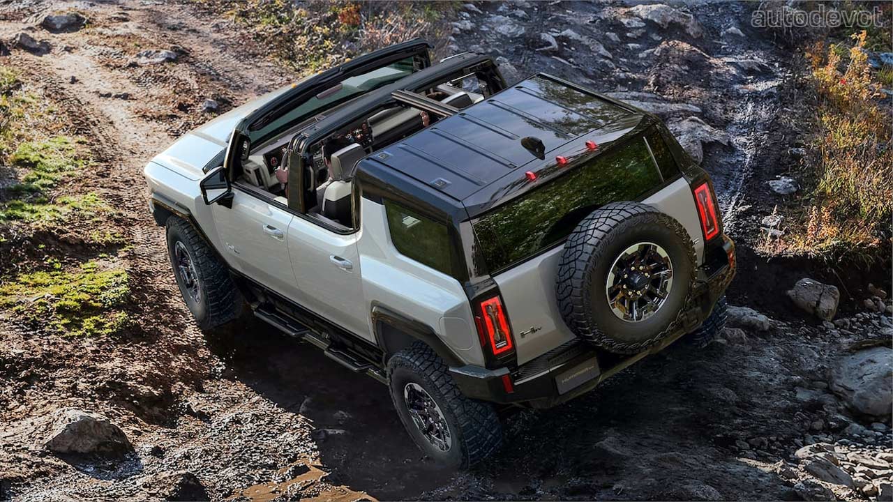 The Hummer EV SUV looks pretty similar to its pickup sibling from most angles, naturally, except that it doesn’t get a bed, obviously. As a result, the SUV is a bit shorter in length with a shorter wheelbase compared to the pickup, which should theoretically make it a better off-roader. As the photos showcase, the roof here is modular too.