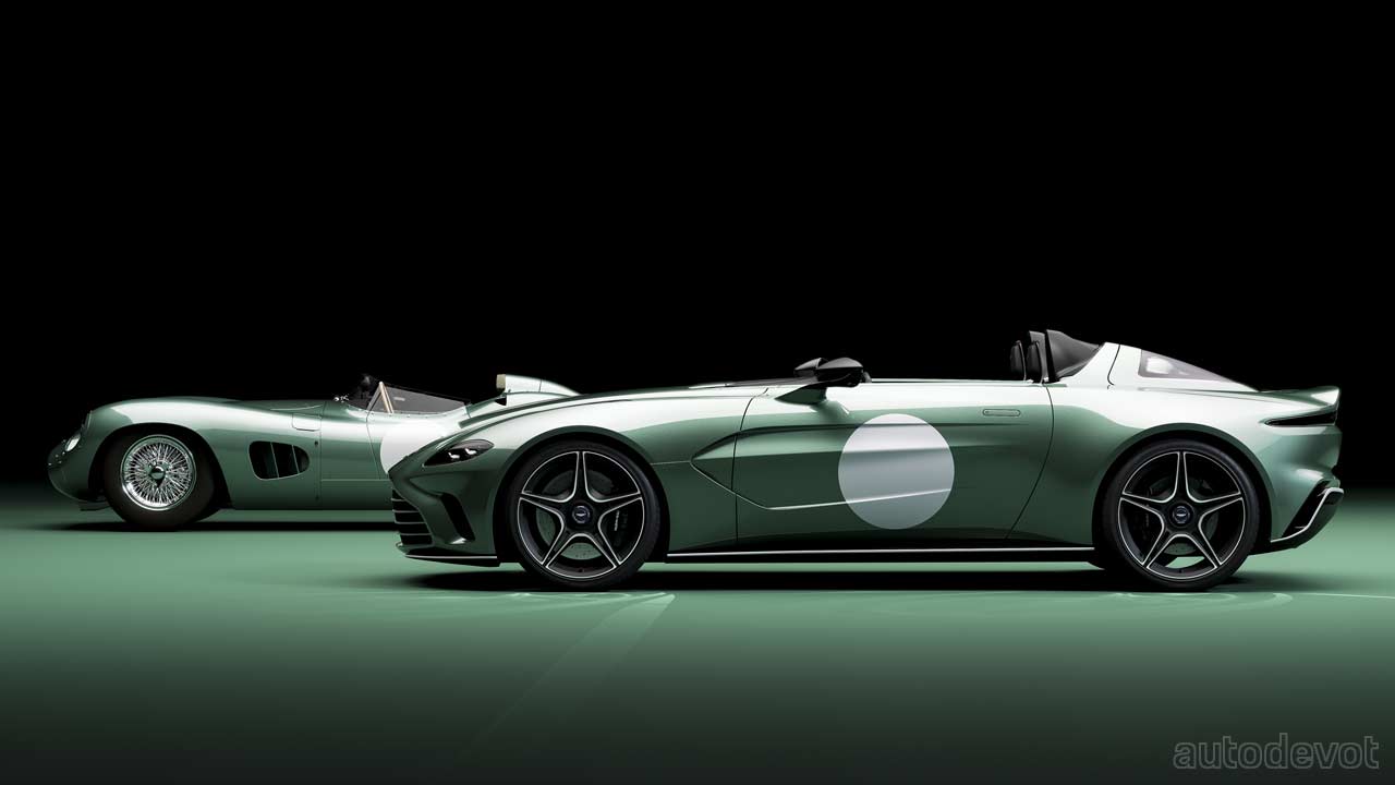 The 2.9L straight-six-powered DBR1 also recorded victories at the 1,000 km of Nürburgring in 1957, 1958 and 1959. Anyway, the DBR1 specification for V12 Speedster includes Aston Martin Racing Green paint, Clubsport White pinstripe and roundels, and a Satin Silver anodized grille with Clubsport lipstick. Rounding off the exterior looks are satin black diamond turned 21-inch centre lock wheels. The cockpit gets Conker saddle leather, Viridian Green technical textile or Caithness Green leather options, and satin silver brushed aluminium switchgear. The driver and passenger helmets are also finished in Aston Martin Racing Green.