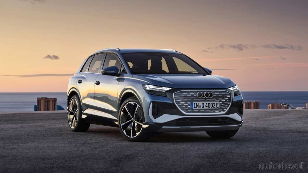 Audi has finally revealed the production versions of the Q4 e-tron and Q4 Sportback e-tron all-electric crossovers that were revealed as concepts in 2019 and 2020, respectively. The Q4 e-tron will go on sale in Europe starting in June 2021, with prices in Germany starting at €41,900. The Sportback models will be available at a later date, with prices starting at €43,900 in Germany.
