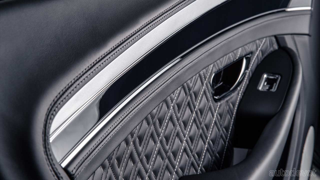 Speaking of which, the exterior of the car can be finished in Onyx (black) or Glacier White paint, complemented with high gloss carbon fibre elements such as the front splitter, side skirts, boot lid spoiler, and the rear diffuser insert. Notice a Moonbeam (silver) contrast pinstripe on the edge of these carbon fibre pieces. Rounding off the exterior looks are 22-inch Mulliner Driving Specification wheels, finished in dark metallic Tungsten paint.