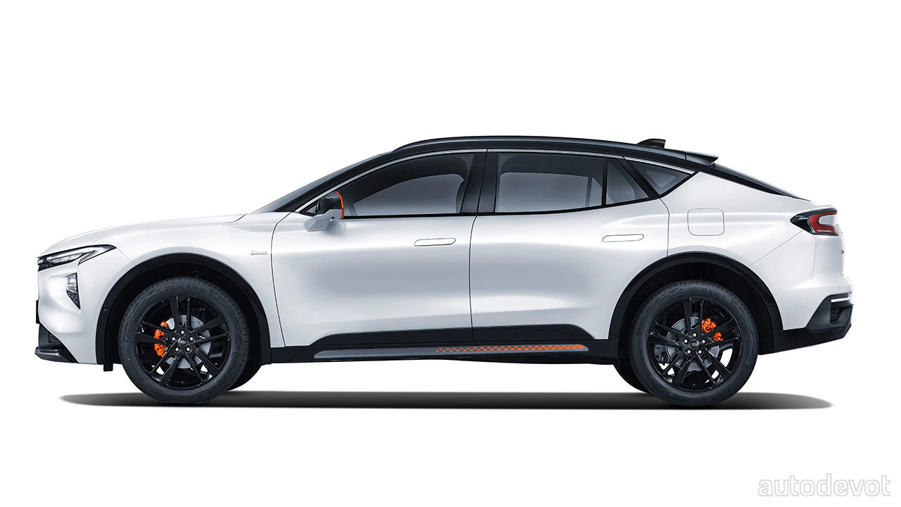 The front fascia with that grille shape and headlight combination somehow reminds me of a Mazda. The scales on the grille appear to be active; meaning, they can open or close as required. Either way, the Evos looks pretty cool, especially with the tasteful application of contrasting elements such as black and orange over a white paint in this 1st Edition model, and will certainly appeal to the buyers who are into such bodystyles.