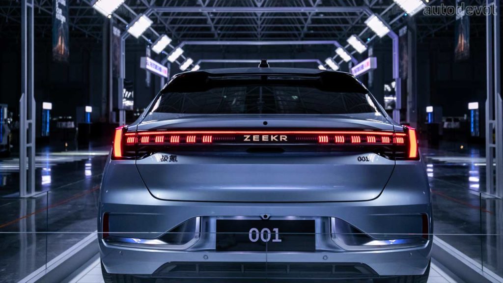The Zeekr 001 reminds you of Lynk & Co cars with its front fascia, especially the grille and the headlights. In fact, it looks like a hunkered-down version of the Lynk & Co 01 crossover. Its side profile reminds me of the Porsche Macan, while at the rear, it’s back to Lynk & Co. As for the dimensions, the 001 measures 4,970 mm long, 1,999 mm wide and 1,560 mm tall. It boasts a wheelbase of 3,005 mm.