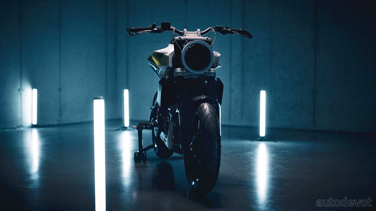 Speaking of which, the photos don’t reveal much, but we can figure out its design which is similar to Vitpilen and Svartpilen models. The battery modules appear to have been housed inside the “fuel tank”, which I think is a perfect place for a swappable battery system the concept boasts.