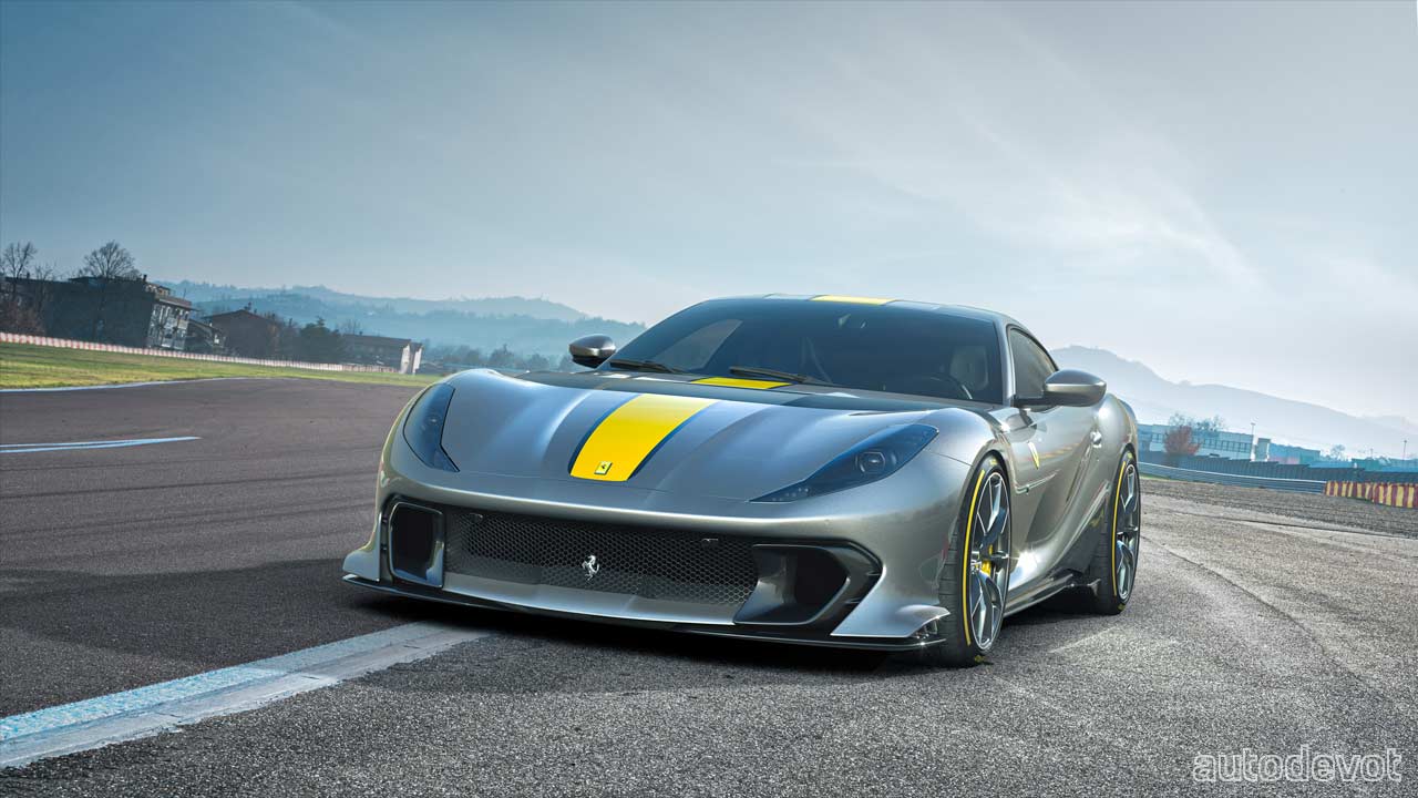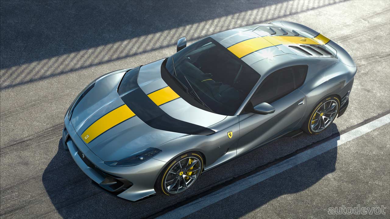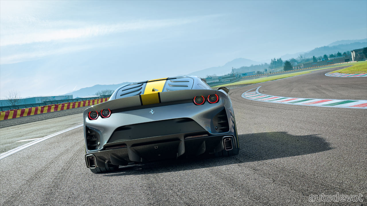 The 6.5-litre V12 still remains naturally aspirated, but here, it pumps out 610 kW (830 metric hp) at 9,250 rpm, which is 30 horses more. However, the engine here revs up to 9,500 rpm, which is 1,000 rpm more than the one in the 812 Superfast. Some of the key modifications to the powertrain components include a new valve timing mechanism and a new exhaust system.