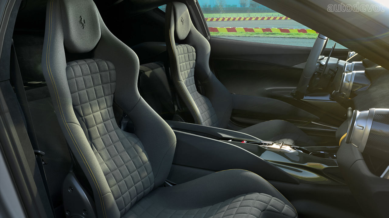 Ferrari also said that carbon-fibre has been used extensively both on the exterior and in the cockpit to reduce the car’s overall weight compared to the 812 Superfast. Notice a simpler door panel. The new model also gets version 7.0 of the Side Slip Control vehicle dynamics system.