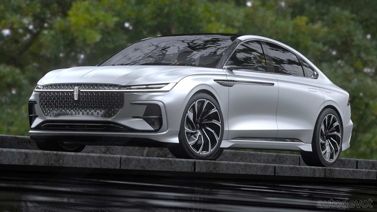The handsome sedan sports the brand’s latest design language with a connected running light signature at the front, which is mimicked at the rear. Upon approach, the headlights and taillights perform a welcome animation. The updated Lincoln grille at the front features a starburst pattern. Notice how the design element on the side flows seamlessly into the flush door handles. The satin silver paint is complemented with tinted chrome and copper accents. Rounding off the exterior looks are wheels with aero flaps.