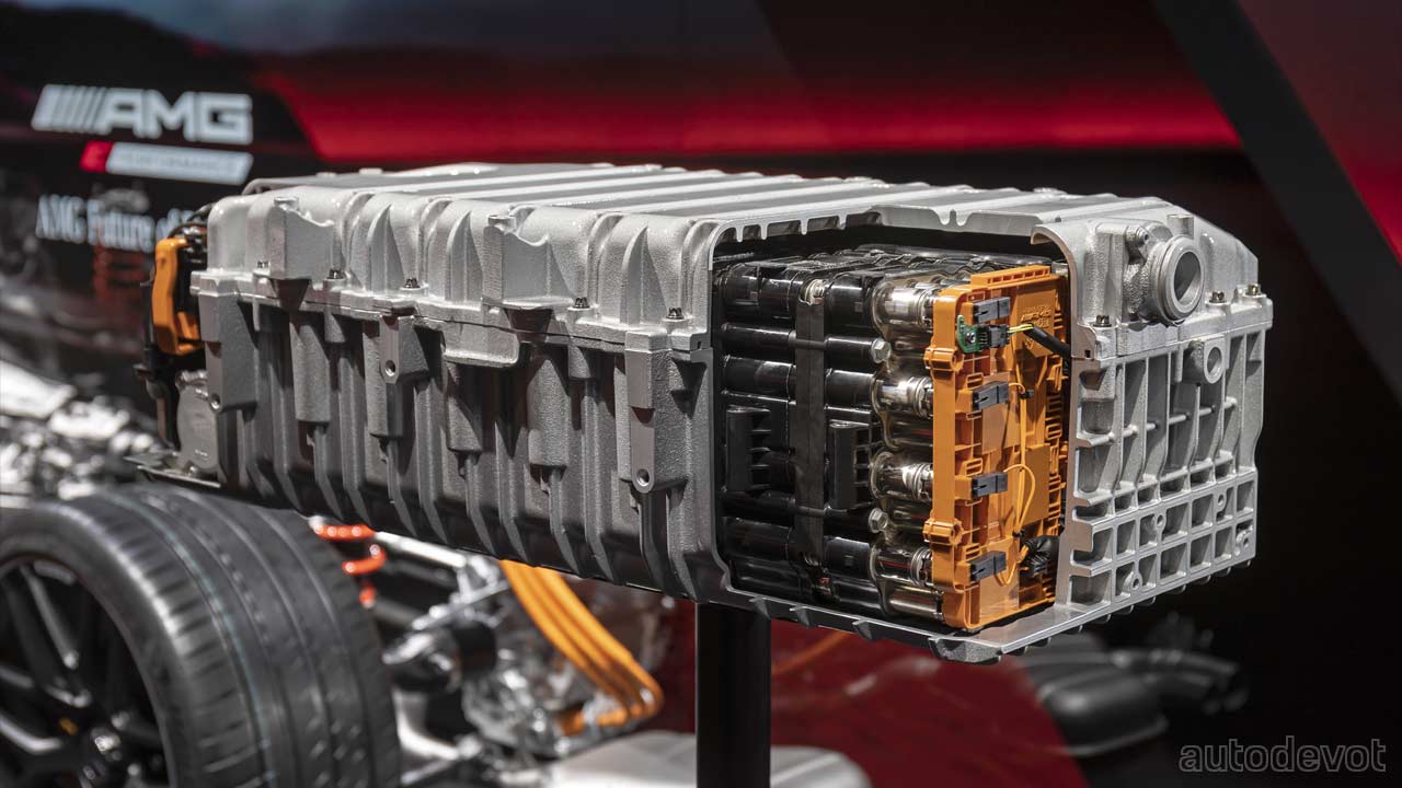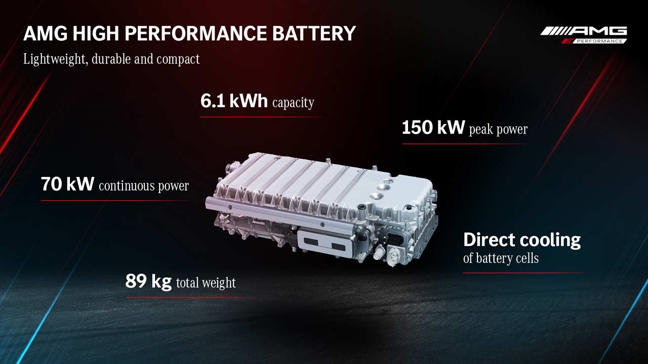 We need to talk about the battery pack as well. It’s a 400-volt battery pack, but it boasts “direct cooling” of the cells. The 560 cells are cooled individually, meaning, they’re permanently surrounded by a coolant. Apparently, the AMG specialists had to develop new cooling modules that are only millimetres thin.