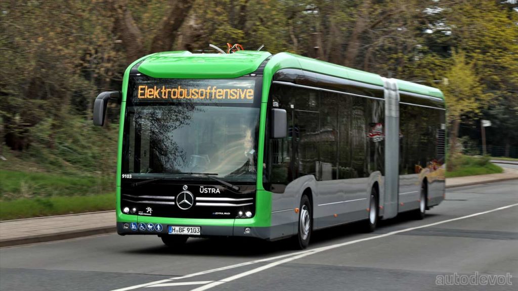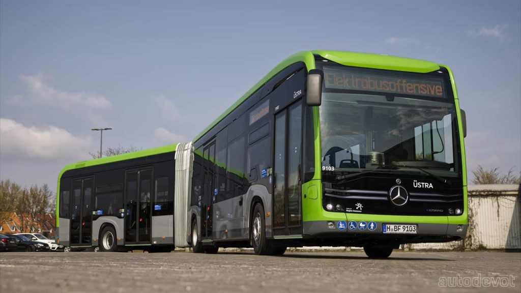 Üstra has placed an order for 48 city buses, of which, 30 are eCitaro solo and the remaining 18 are eCitaro G articulated buses. Mercedes offers 3- and 4-door versions of these articulated buses and it appears that Üstra has opted for the latter. There are multiple battery pack options, but these eCitaro G buses in particular are equipped with 10 battery packs with a total capacity of 330 kWh. The buses are equipped with a pantograph to get charged up at the bus stops.