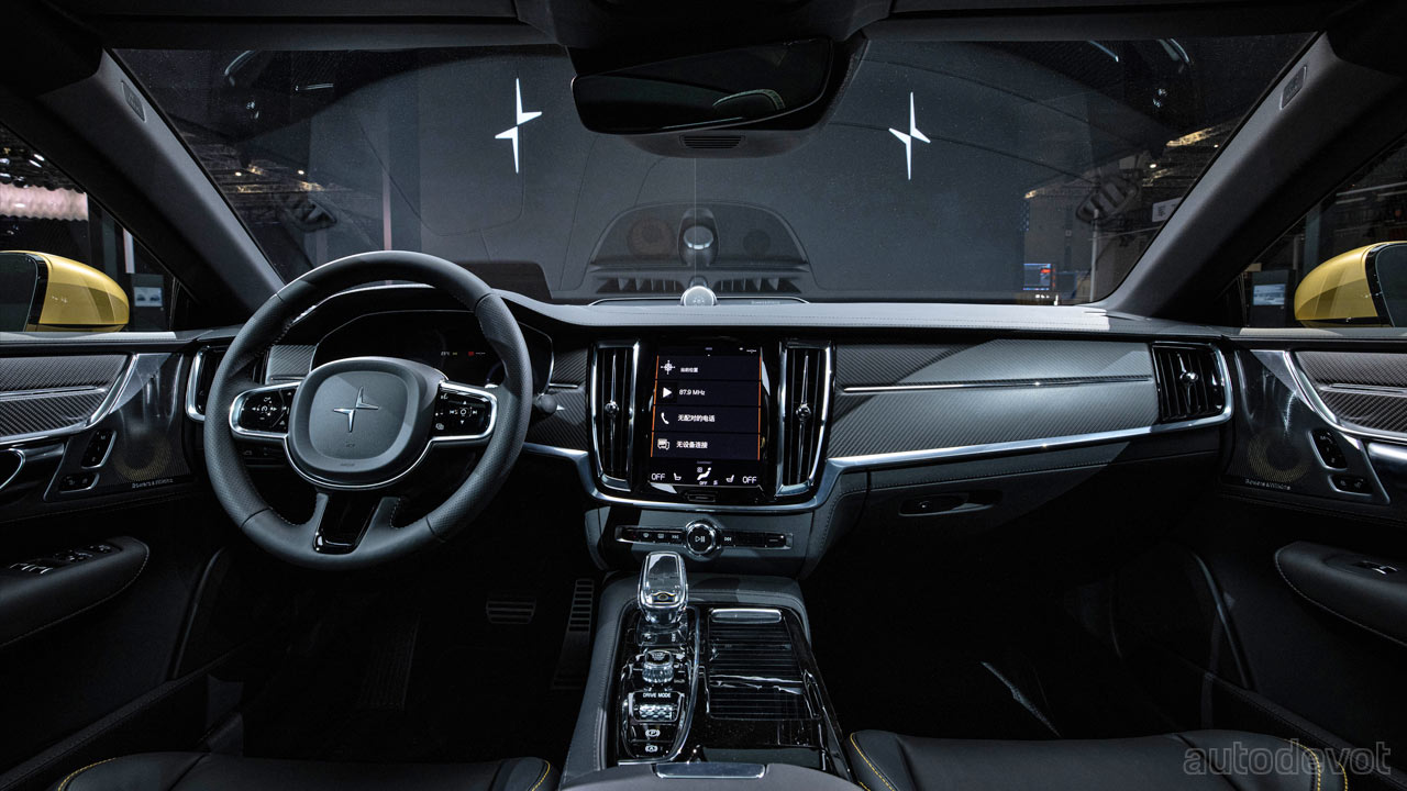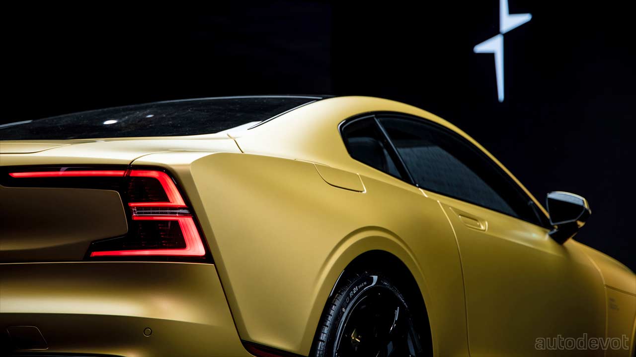 The cabin too has color matching going on with gold-colored seat belts and contrast stitching. The rest all remain the same. The Polestar 1 is an AWD PHEV that combines a 2.0-litre 4-cylinder petrol engine that is both supercharged and turbocharged, and two electric motors (85 kW/116 metric hp each) that power the rear wheels. In addition, the Integrated Starter Generator (ISG) adds 52 kW (71 metric hp) more. The combined figures for the U.S. market are 462 kW (628 metric hp) and 1,000 Nm (738 lb-ft) of torque. For European markets, the power output is 447 kW (608 metric hp). The car’s 34 kWh battery pack is claimed to offer an estimated pure electric range of up to 96.5 km (60 miles).