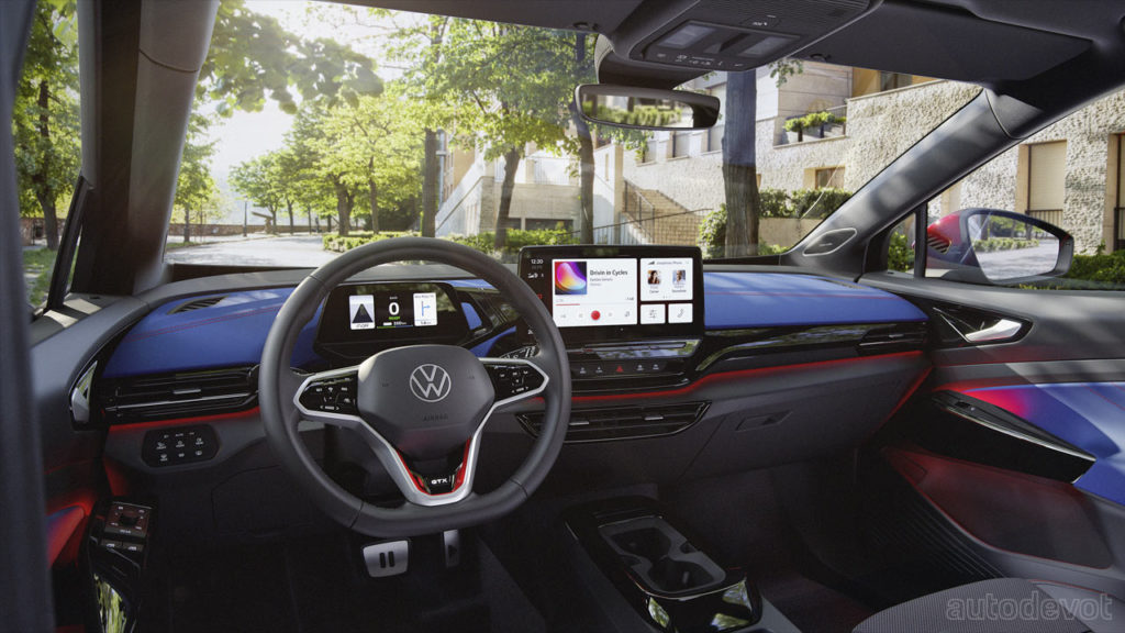 As mentioned, the ID.4 GTX is an all-wheel-drive vehicle with two motors, one at each axle, offering a combined output of 220 kW (299 metric hp), which is slightly less compared to the Skoda Enyaq iV RS. The 82 kWh (77 kWh net) battery pack is claimed to offer a range between 340-480 km (211-298 mi). Unlike the RWD ID.4 base model, there’s no 55 kWh (52 kWh net) battery pack option. A 30-minute fast-charging is claimed to offer a range of up to 300 km (186 mi).