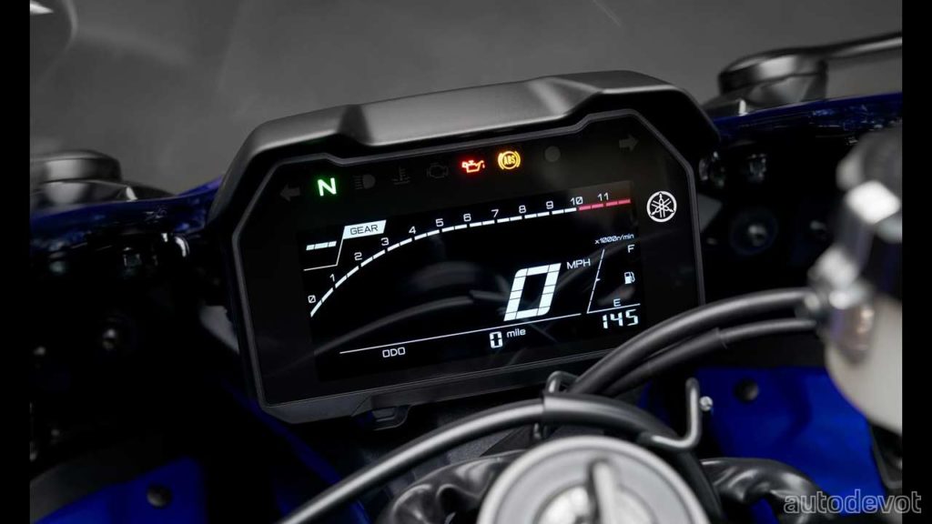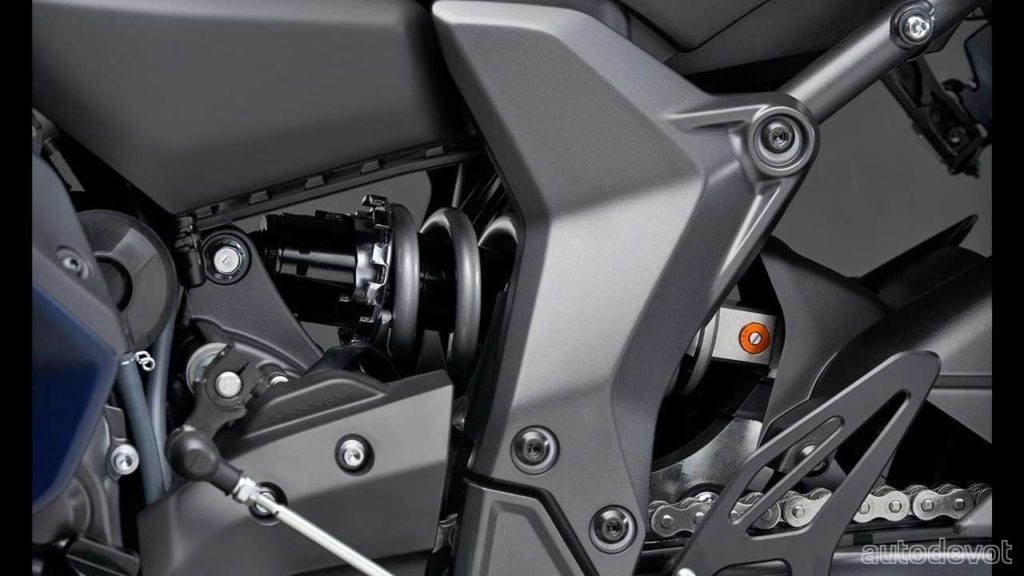 Other features include a full-LCD instrument display, KYB 41 mm front fork (preload, rebound and compression adjustable), link-type Monocross rear suspension (preload and rebound adjustable), Assist & Slipper (A&S) clutch, and 10-spoke 17-inch cast alloy wheels shod with Bridgestone Battlax Hypersport tyres (120/70 front and 180/55 rear). Braking duties are handled by twin 298 mm discs at the front and a single 245 mm disc at the rear.