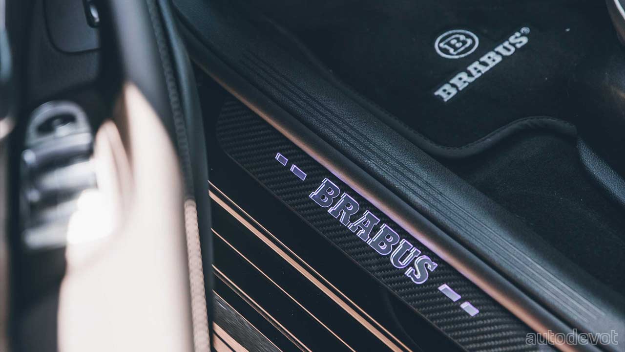 The interior can also be customized with stainless-steel scuff plates with a backlit Brabus logo that changes color with the ambient lighting; aluminum paddle shifters, carbon inlays, and various leather and Alcantara upholstery options.