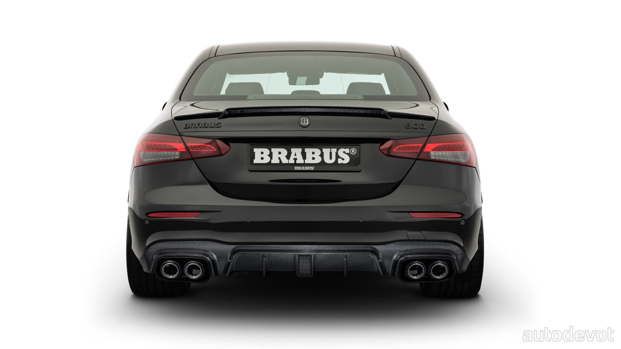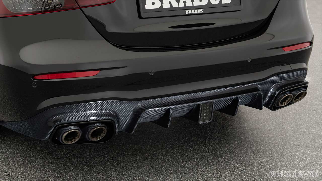 The E63 S gets delicious-looking naked carbon fibre aerodynamic parts that can be ordered with either high-gloss or matte coating. These components include front spoiler lip, intake inserts, a bootlid spoiler, and of course, a rear diffuser insert. Brabus Monoblock ‘Platinum Edition Z’ 21-inch forged wheels round off the looks. While the air suspension comes standard, buyers can opt for a Sports Unit that lowers the ride height by 10 or 20 mm depending on Comfort, Sport or Sport+ modes.