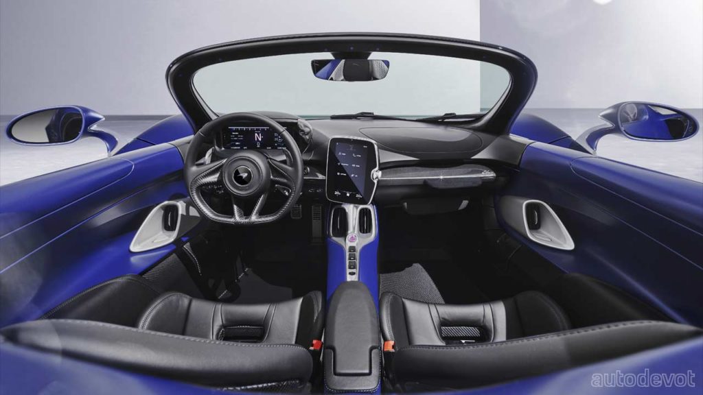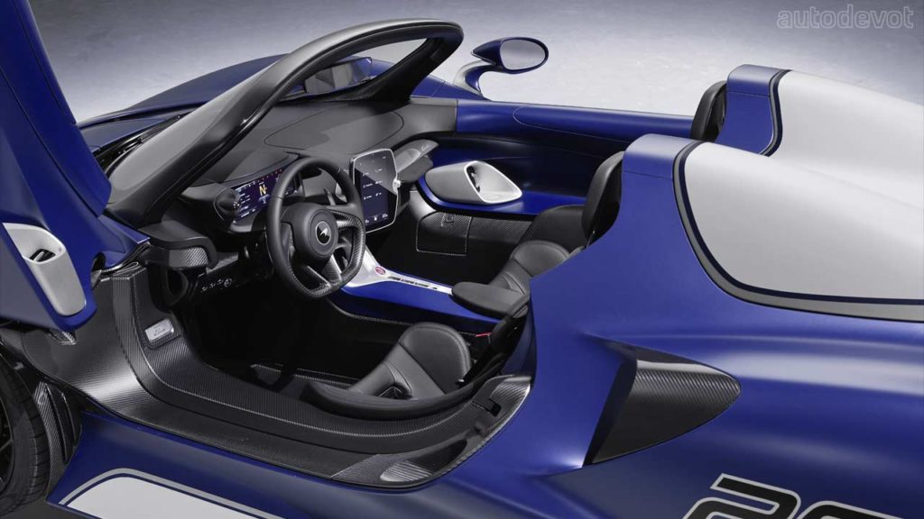 While McLaren is yet to share the full technical details, it said that the windscreen version is only 20 kg (44 lbs) heavier despite the inclusion of rain-sensing wipers, washer jets, sun visors, besides, of course, the heated glass windscreen within a carbon fibre frame. McLaren is targeting a dry weight of less than 1,300 kg (2,866 lbs).