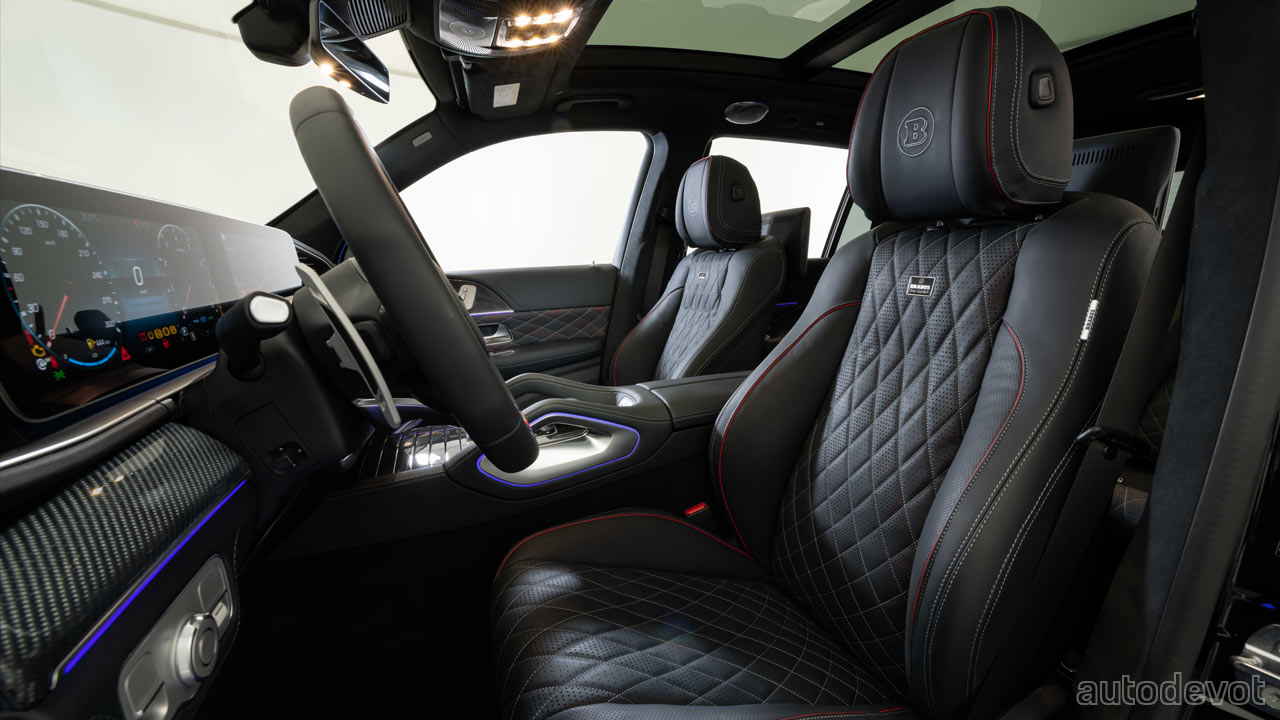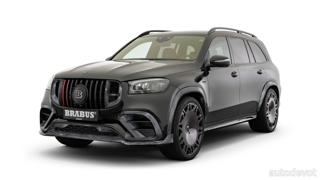 Brabus will also offer a quad stainless-steel high-performance exhaust system with active flaps. The driver can switch between a throaty V8 in ‘Sport’ mode and a subtle whisper in ‘Coming Home’ mode. Of course, the exterior and interior of the SUV are decorated with delicious-looking naked carbon elements. Also, a special control module for Airmatic air suspension lowers the ride height of the vehicle by 25 mm. This Brabusized GLS rides on massive 24-inch forged wheels.
