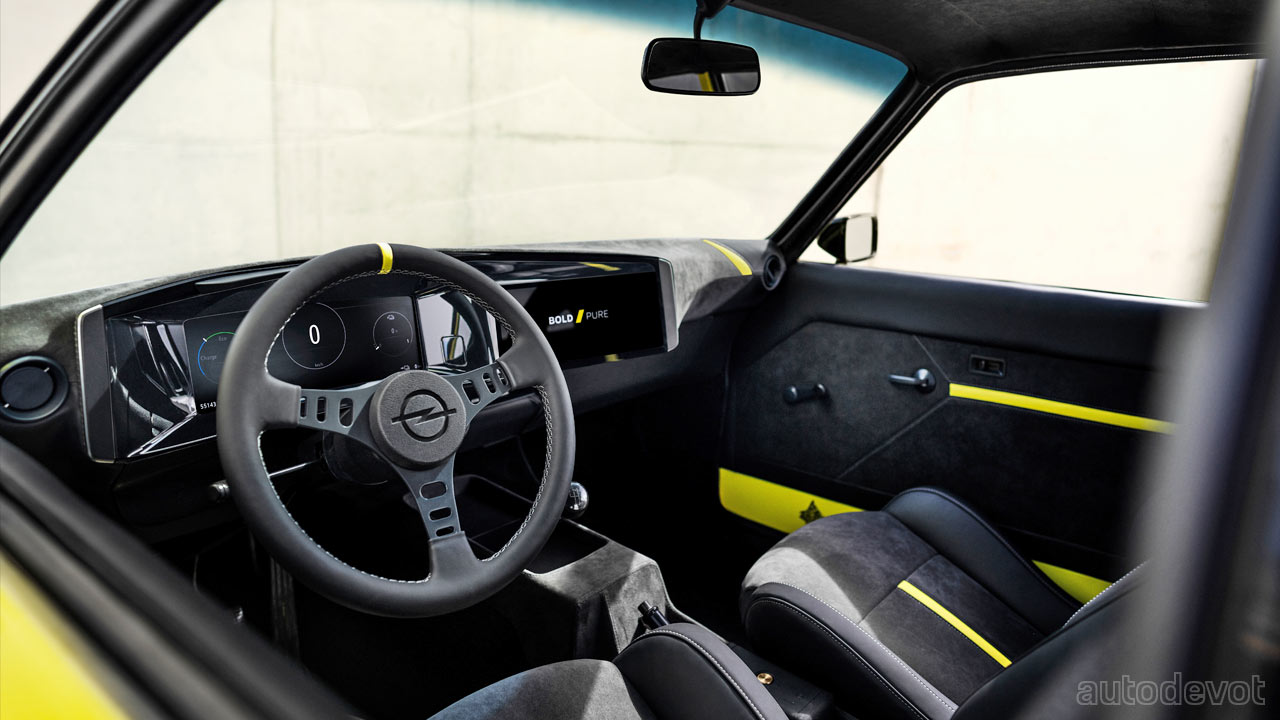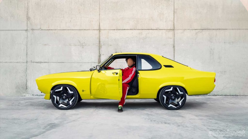 You might think that Opel got inspired by retro-modern styled Honda e and Ioniq 5 electric cars, which might be true, but according to the company, the inspiration came from the people who transform classic cars into restomods with modern tech and new design. The full name of this car is Opel Manta GSe ElektroMOD. The term ‘ElektroMOD’ is, of course, a portmanteau of electric and restomod.