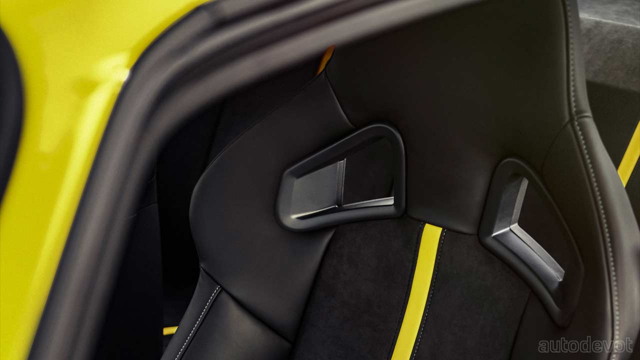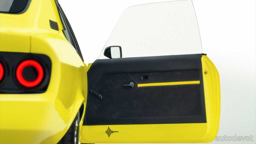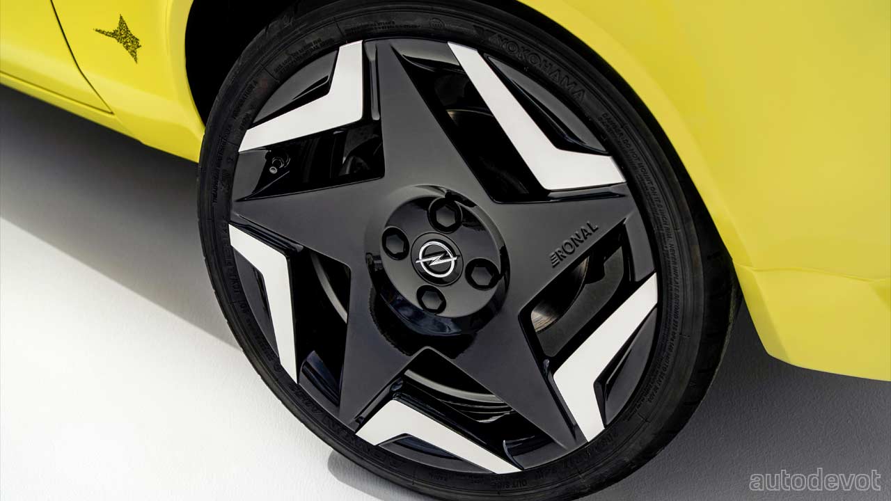 On the front fascia, the designers have applied the new Opel face with a gloss black front grille flanked by matrix LED headlights that first debuted with the Mokka e. On the side, the window shapes and even a little vent-like black insert on the C-pillar have been retained. The rear-end features a modern iteration of the circular taillights. Also, notice a Manta branding with a new Opel font. The car rides on specially designed 17-inch light-alloy wheels from Ronal, shod with mixed-size tyres. The neon yellow paintwork is tastefully contrasted with a black bonnet, black window surrounds, black wheels, and of course, black front and rear fascias.