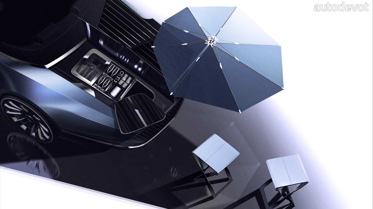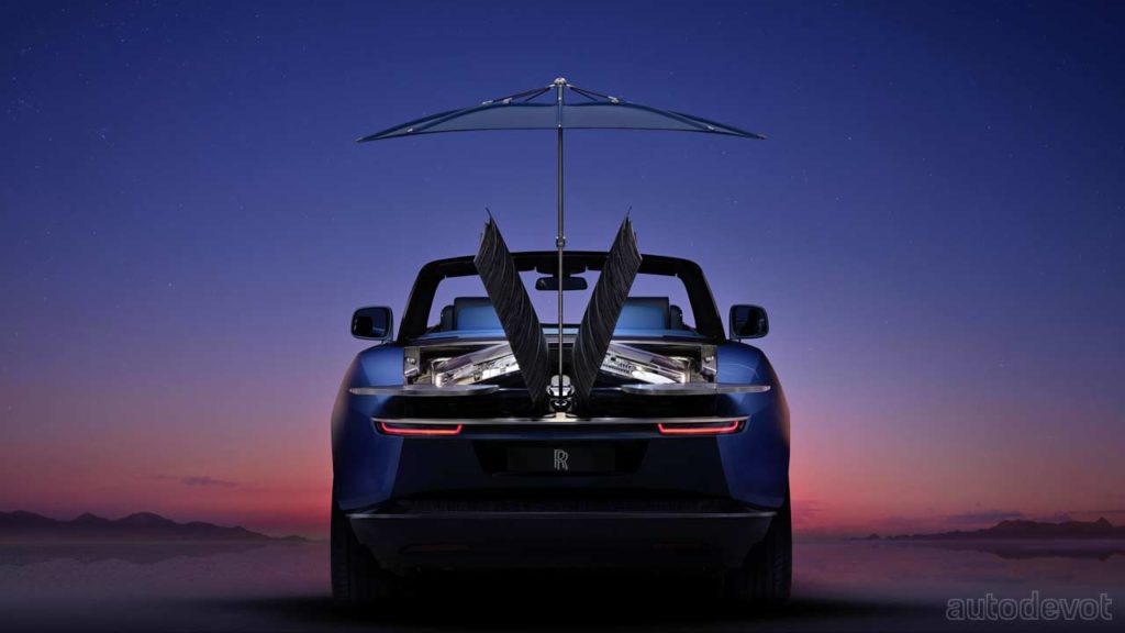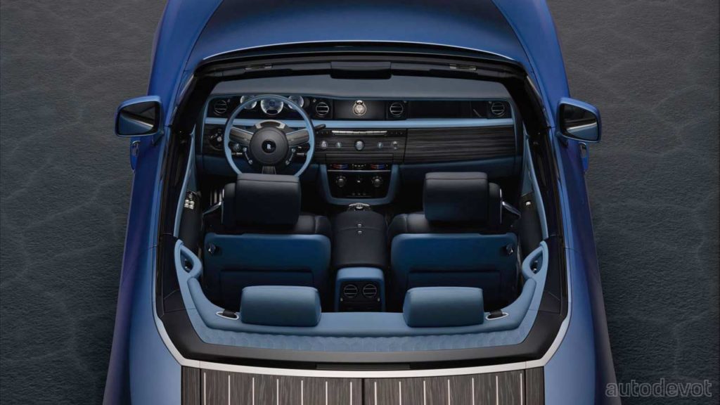 The party piece of the Rolls-Royce Boat Tail, literally, is at the back of the car. The Caleidolegno veneer-lined “aft deck” lids reveal something called a “hosting suite”, which houses a champagne fridge and glasses on one side and bespoke cutlery on the other side. Rolls-Royce has even integrated a climate control system to preserve the cuisine stowed on board. The hosting suite also stows a parasol, cocktail tables, and of course, stools. Also, is it just me or the hosting suite reminds you of the Vision Mercedes-Maybach 6 Cabriolet?