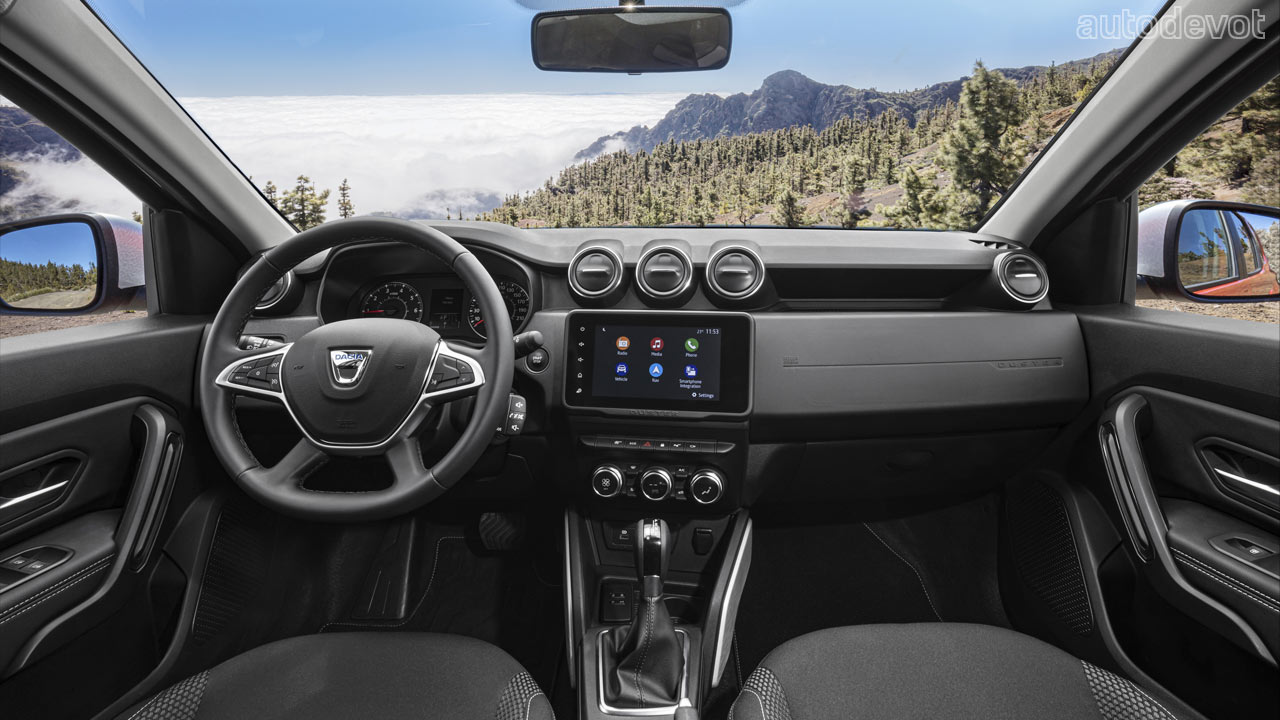 The styling tweaks are rather subtle as you can tell; there’s a new headlamp detailing with a Y-shaped running light signature that is in line with the latest Dacia models. The new grille pattern, new 17-inch rims, and the new taillight detailing — all mimick the Y-shapes. The rear-end also gets a more prominent roof spoiler. The rest of the vehicle remains fairly unchanged. However, Dacia claims to have made a set of CO2 optimizations (new wheel bearings, tires, and LED lighting) including the drag area (SCx) that cuts down up to 5.8 grams of CO2 in the AWD Duster.