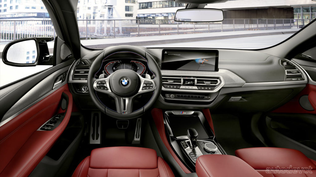 The styling revisions make the car look a li’l bit sharper with new 10 mm slimmer LED headlights, new LED taillights, revised front & rear bumpers, and new wheel designs. Although the kidney grille is now larger, thankfully, it is not disproportionately huge. The X4 gets adaptive LED headlights with Matrix function as standard; Laser light is optional. The crossovers ride on 19-inch wheels as standard, while up to 21-inch wheels can be found in the options list. The M sports brakes with blue or red brake calipers are part of the M sports package. The adaptive M sports suspension can also be found in the options list.