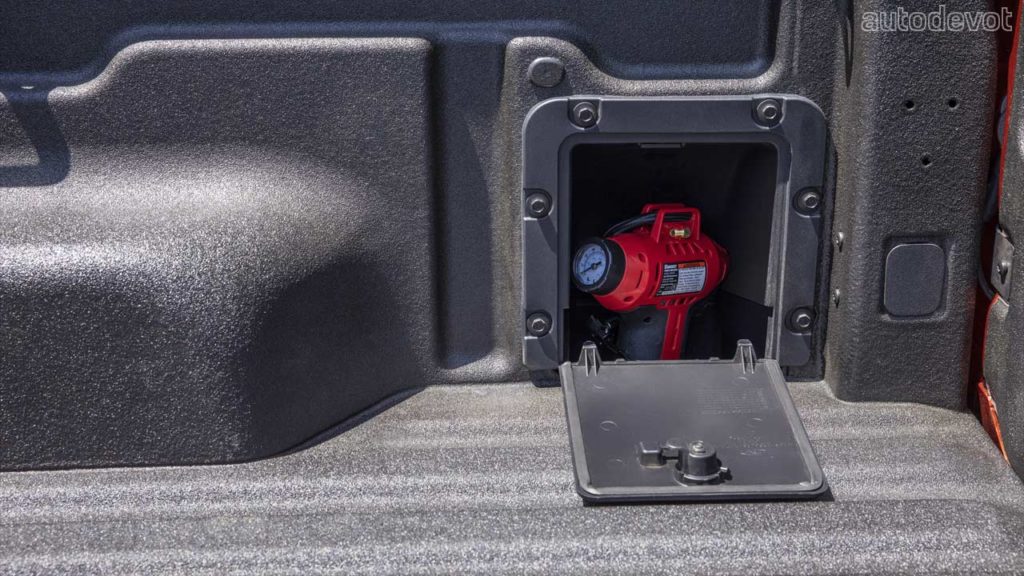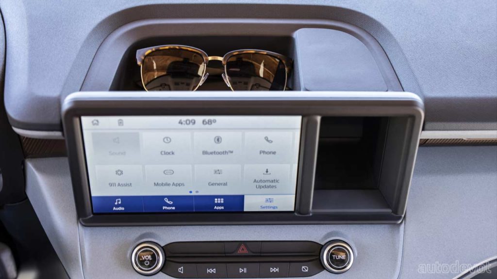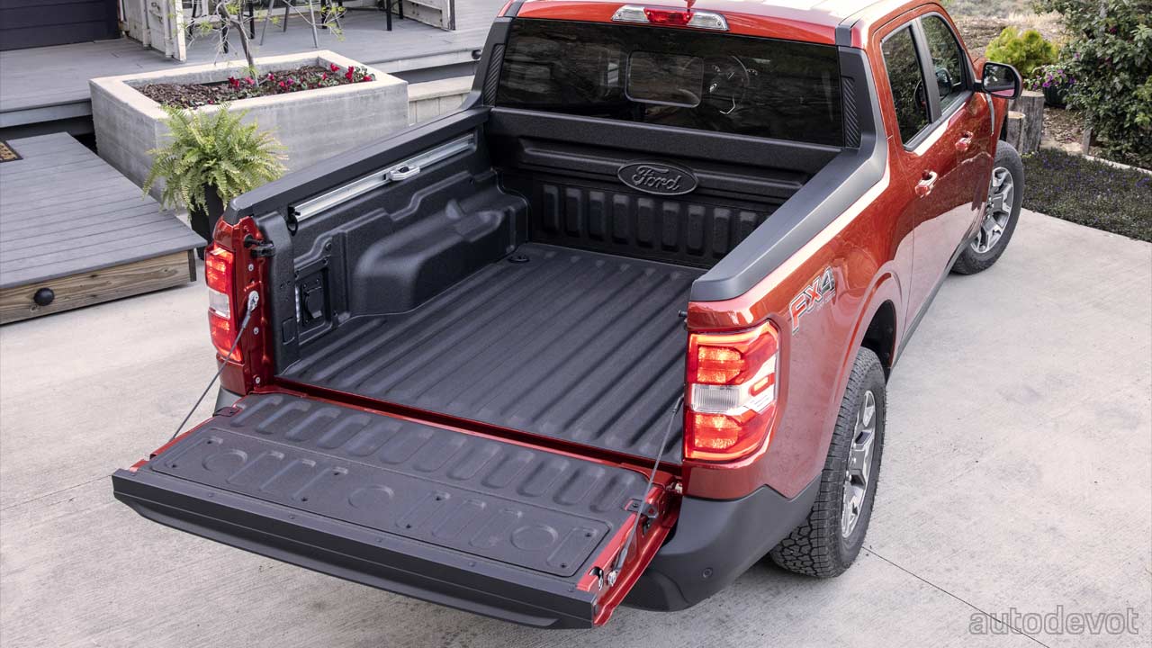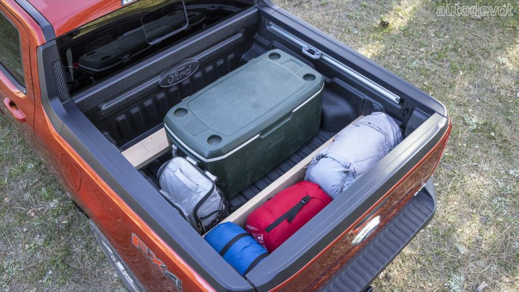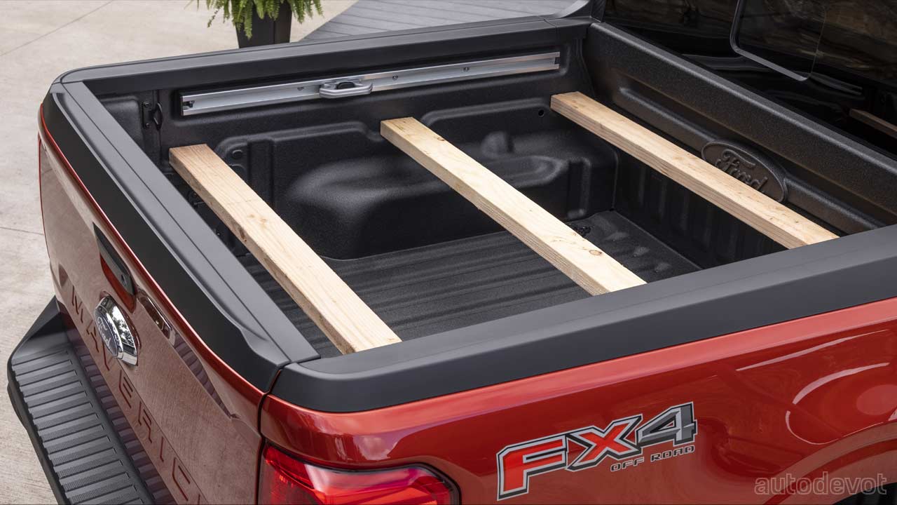 Let’s talk a li’l bit about the bed. In the Maverick, the bed is branded as ‘FLEXBED’, where the design allows the owners to neatly organize things. Owners can create segmented storage, elevated floors, bike and kayak racks and more by sliding 2x4s or 2x6s into slots stamped into the side of the bed, Ford said. Two 12-volt outlets come standard, while there’s an option for a 110-volt 400-watt outlet.