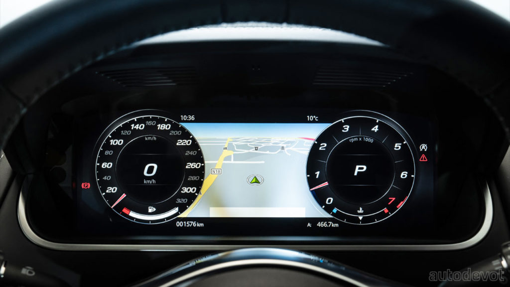 Key features include LED headlights, LED taillights, 20-inch wheels, up to 12-way electrically-adjustable seats with memory, a 12.3-inch digital driver display, Navigation Pro system, 380-watt Meridian sound system, 380 mm front & 376 mm rear discs, adaptive dynamics, electronic active rear differential with torque vectoring by braking, and switchable active exhaust system.