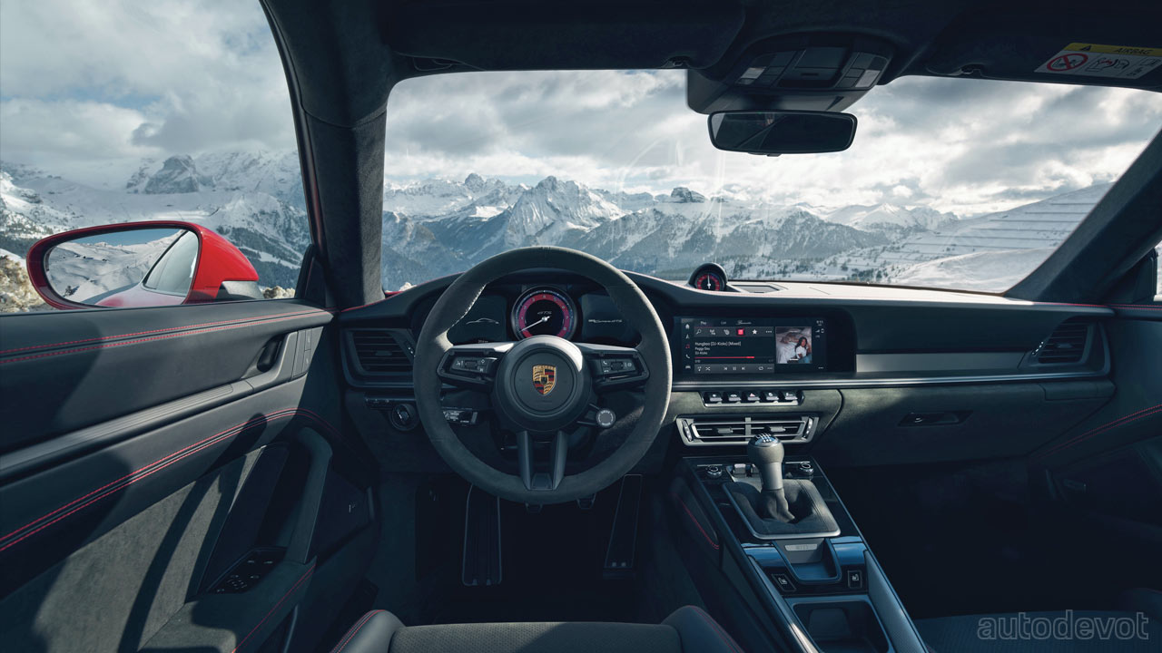 Inside, Sport Seats Plus with 4-way electric adjustment come standard, as are the GT Sport steering wheel and Sport Chrono package. The optional 7-speed manual shifter has been shortened by 10 mm to make it even more enjoyable to use. Porsche said that the interior insulation has been reduced to “enhance the emotive driving acoustics”. There’s also the latest version of Porsche Communication Management (PCM) with natural speech recognition activated via “Hey Porsche” command.