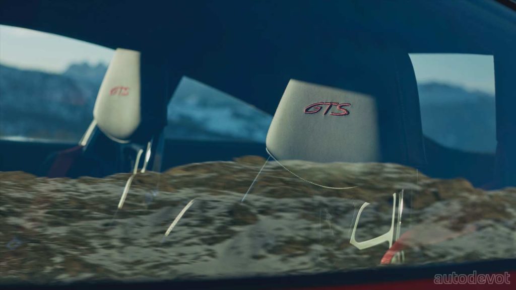 One of the options include Lightweight Design package that’ll be available for the GTS from November 2021. The package includes lighter carbon fibre reinforced plastic (CFRP) full bucket seats, lightweight glass for the side and rear windows, a lightweight battery and deletion of the rear seats, which together save 25 kg (55 lbs). The package also includes rear-axle steering and additional aerodynamic touches.