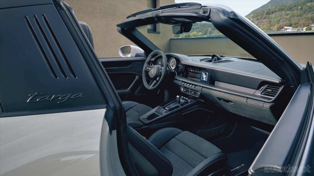 Visually, the GTS variants look very subtle and understated, and until you come closer to check the badges, you wouldn’t be able to tell the difference between the other Carrera and Targa models. However, the front bumper design is slightly different in the GTS, and in the Targa 4 GTS, the hoop will be in black. Also, as standard, the cars come with black wheels (20-inch front, 21-inch rear) and darkened headlight areas. The Porsche Active Suspension Management (PASM) has been specifically tuned for the GTS with the rear helper springs borrowed from the Turbo. The brakes also come from the Turbo. Porsche says that the chassis tuning for the Targa 4 GTS is similar to that of the Targa 4 S.