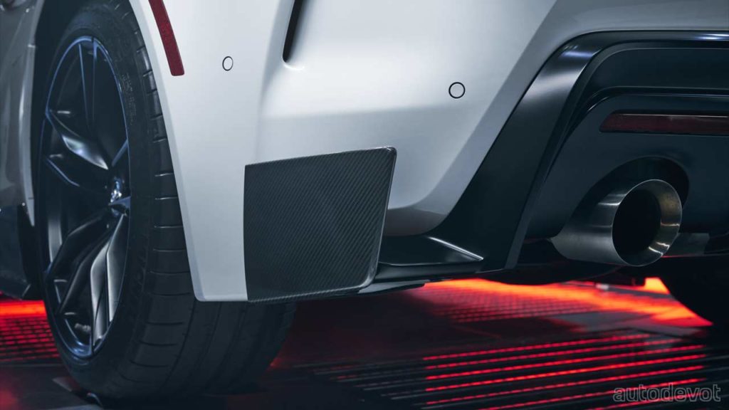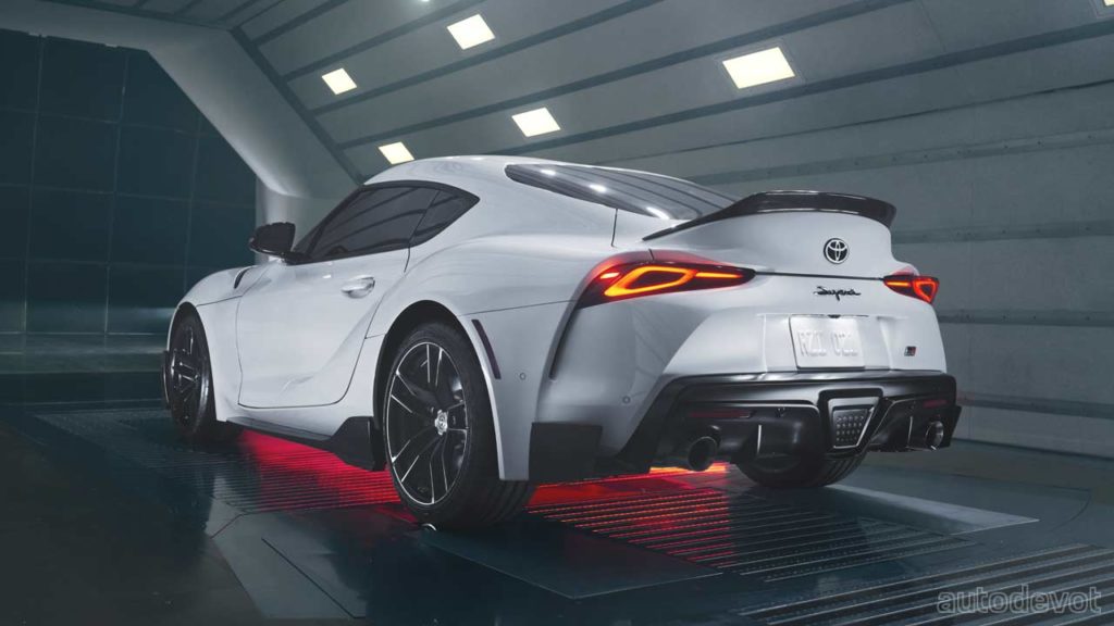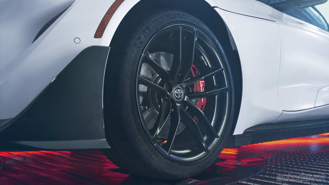 These include a front splitter with larger canards, rocker panels on the side, rear canards, and of course, a duckbill rear spoiler. Toyota assures that “the aero kit isn’t just for looks. Its functional purpose improves downforce and stability during both everyday drives and hot laps around a local track”. Complementing the aero kit are unique 19-inch wheels in a matte-black finish.
