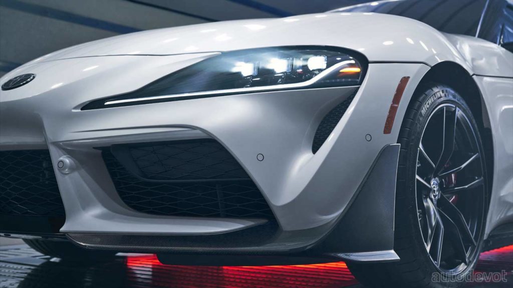 Toyota further said that the Supra 3.0 chassis was also tweaked heading into its second year of production. Lightweight aluminum braces were added to increase lateral rigidity, along with front and rear bump stops and new damper tuning.