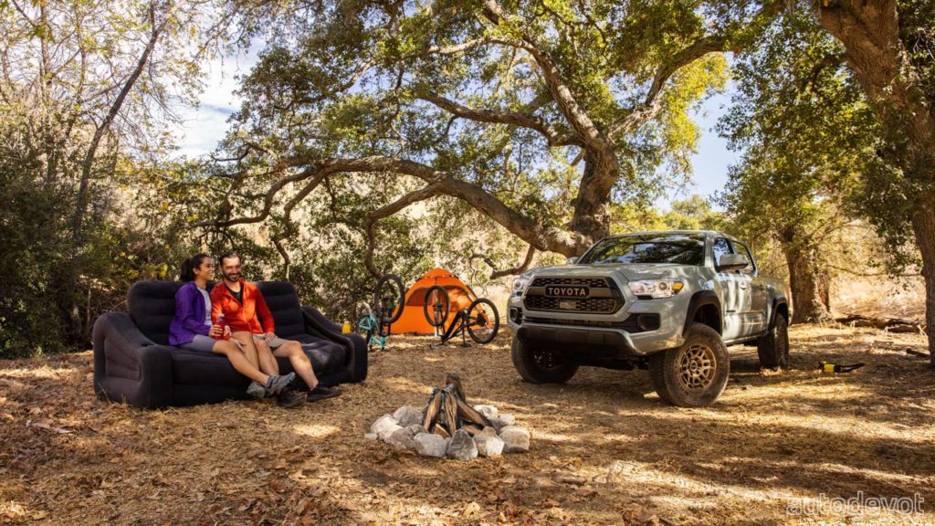 In addition to the 2022 Tacoma TRD Pro, Toyota is offering the 2022 Tacoma Trail Edition 4×4 that also claims to be ready for adventure with a lifted suspension. Thanks to taller coil springs, the front of the new Tacoma Trail is lifted by 1.1-inches. The front air dam found on the standard SR5 trim is deleted for better ground clearance.