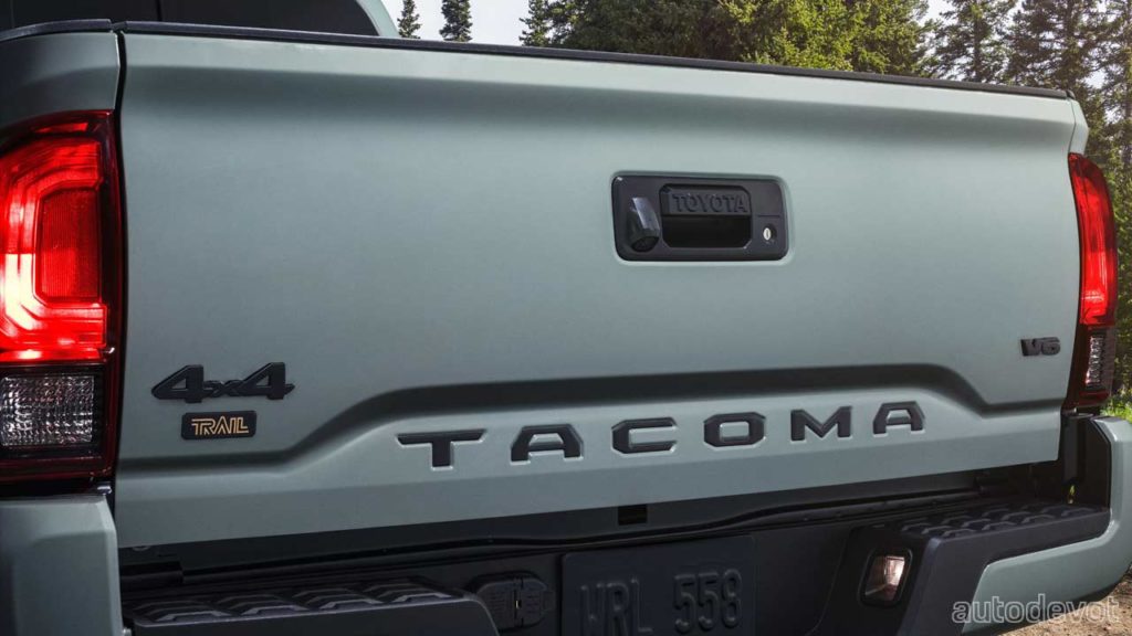 Based on the SR5 4×4 variant, the Tacoma Trail Edition is upgraded with a standard locking rear differential. This truck also borrows skid plates from the TRD Off-Road trim.