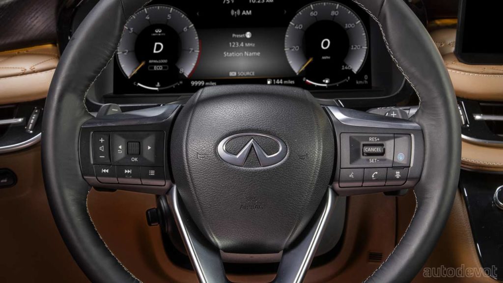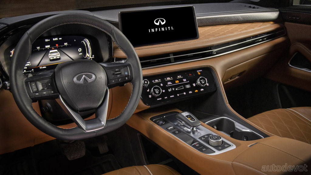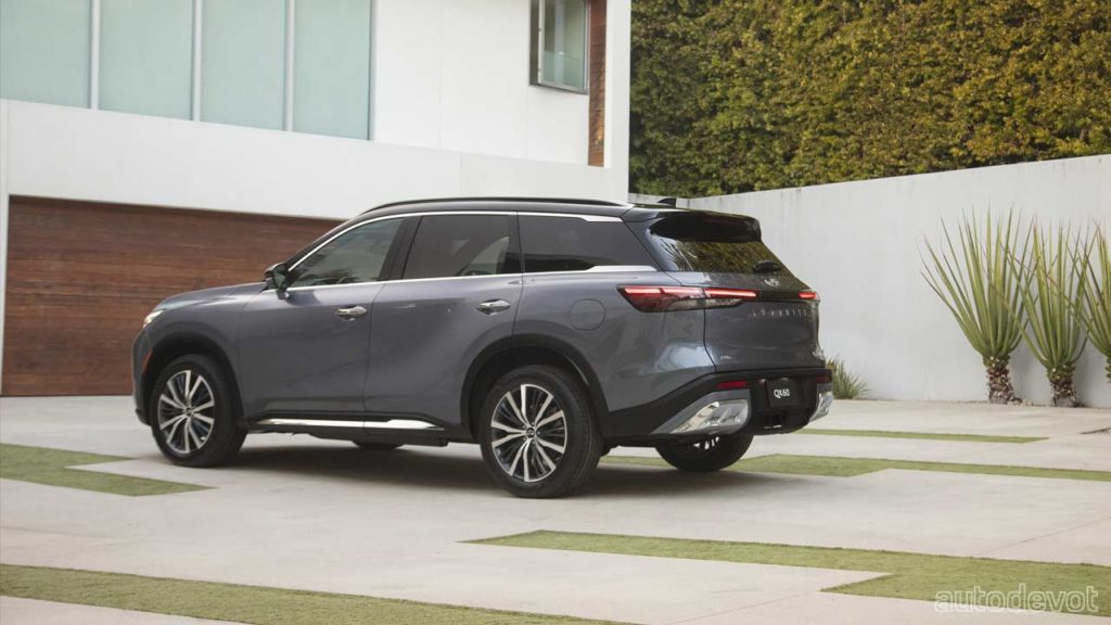 Moving on to the juicy bits of the story then, the new QX60 is powered by the same, 220 kW (299 metric hp) 3.5-litre V6 petrol engine as the previous-gen model, however, this time it is paired with a ZF 9-speed automatic gearbox that drives the front wheels as standard. When opted for an AWD system, certain grades of the QX60 according to Infiniti, can tow up to 6,000 lbs (2,722 kg) — a 20% improvement over the previous model.