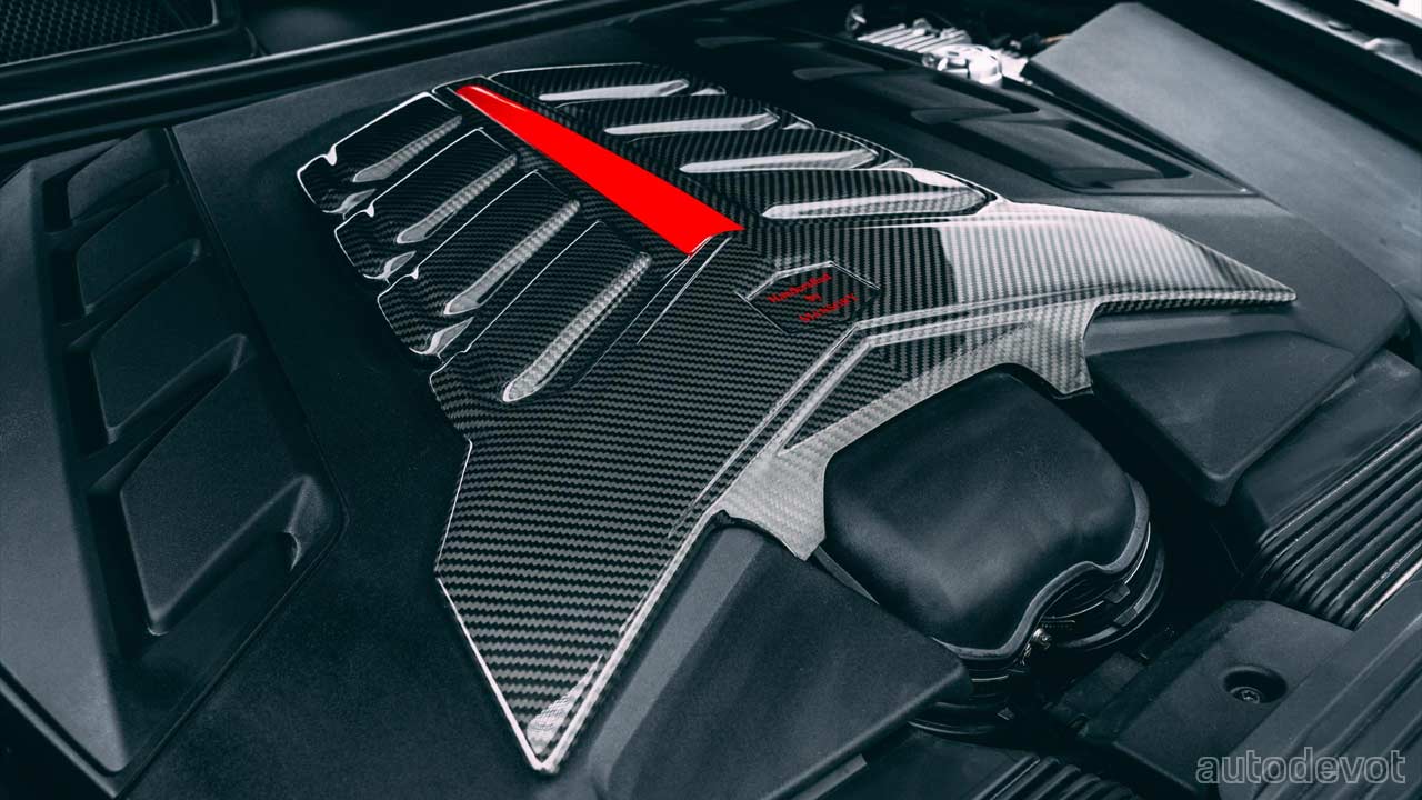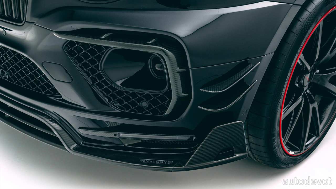 The kit includes a generous amount of carbon fibre elements, including the front grille inserts, a front spoiler, canards/flics, side rocker panels, mirror caps, rear diffuser, a two-piece roof spoiler, an additional tailgate-mounted spoiler and so on. The bonnet is also made of carbon fibre and features additional air outlets. The car rides on massive 23-inch forged wheels, while the buyers can go for 24-inch ones.