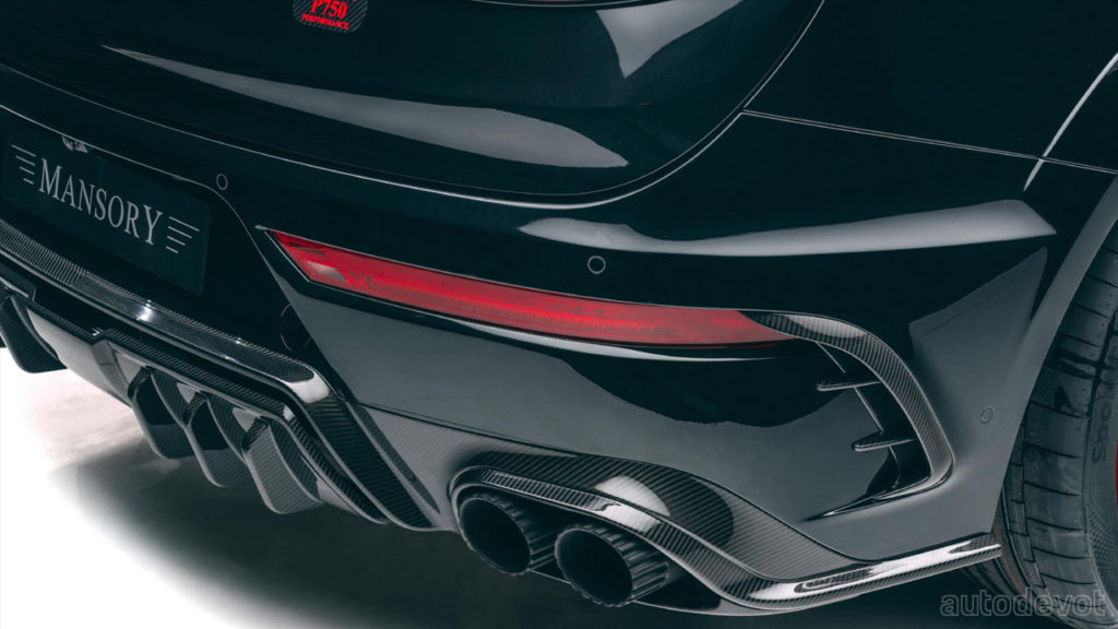 Thanks to new turbochargers, a modified ECU, a new airbox and a new sports exhaust system, the 4.0L V8 biturbo motor pumps out 552 kW (750 metric hp) and 1,020 Nm (752 lb-ft) of torque, up by 200 metric hp and 250 Nm compared to the stock tune. Mansory claims a 0-100 km/h (62 mph) time of 3.7 seconds and a top speed of 317 km/h (197 mph).