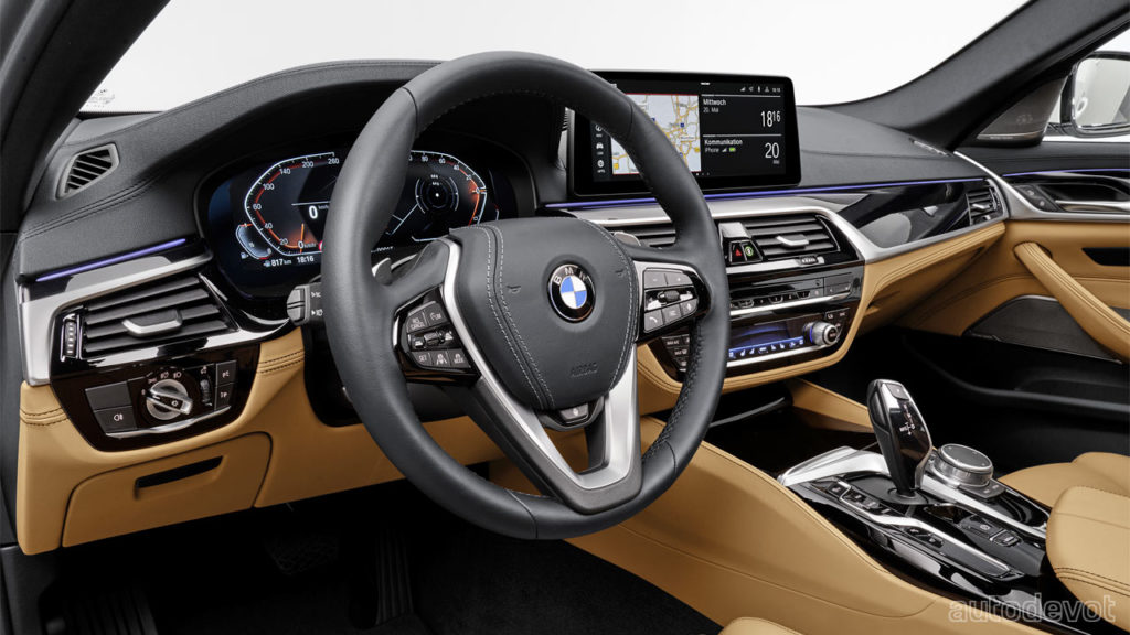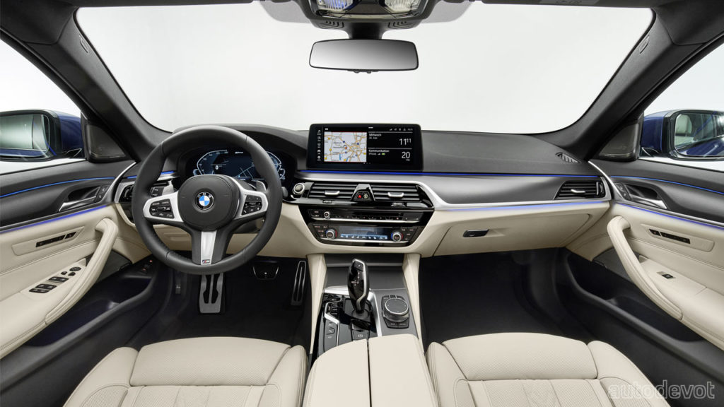 The 530i M Sport is powered by a 2.0-litre 4-cylinder turbocharged petrol engine with 185 kW (252 metric hp) and 350 Nm (258 lb-ft) of torque. Diesel buyers will have two options. The 520d Luxury Line is powered by a 2.0-litre 4-cylinder turbocharged unit with 140 kW (190 metric hp) and 400 Nm (295 lb-ft) of torque, while the 530d M Sport packs a 3.0-litre in-line 6-cylinder turbocharged unit with 195 kW (265 metric hp) and 620 Nm (457 lb-ft) of torque. All three engines are paired with an 8-speed automatic gearbox.
