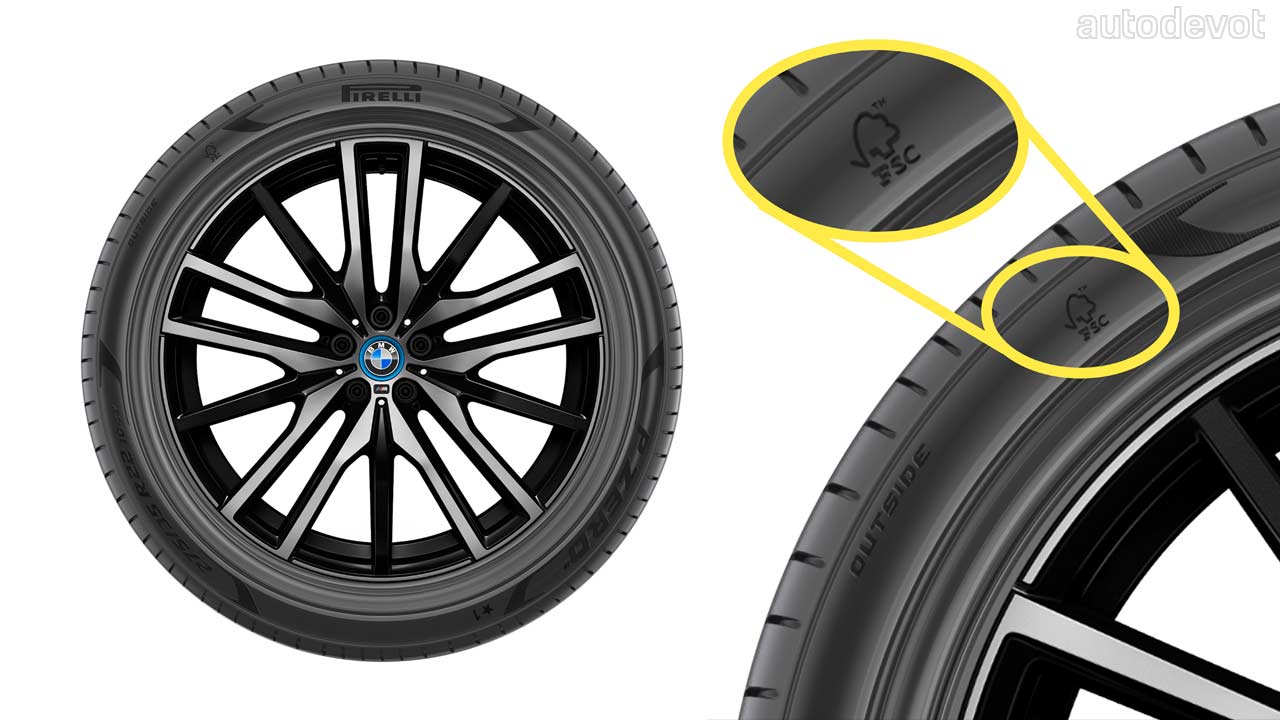 The first model to feature these tyres is the X5 xDrive45e Plug-in-Hybrid. The new 22-inch Pirelli P Zero tyres feature the FSC logo, indicating their significance. To earn this certification, Pirelli adapted its US plant in Rome, Georgia, to produce tyres using FSC-certified natural rubber and rayon. From there, the tyres are delivered to BMW Group Plant Spartanburg, around 370 km (230 mi) away, and mounted on the X5 PHEV.