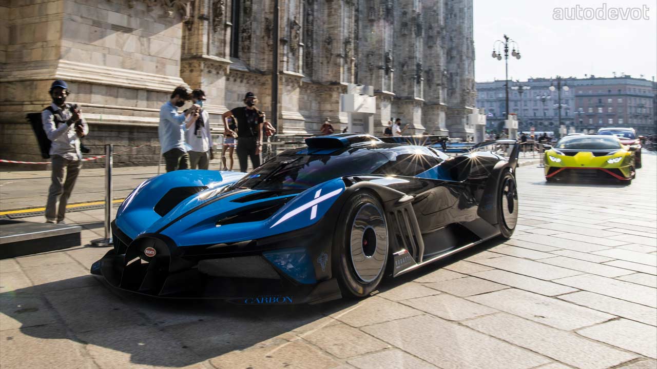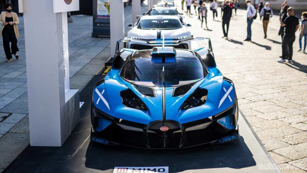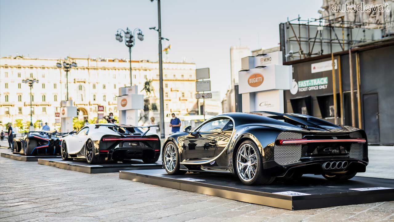 The one big advantage of an open-air motor show, besides the obvious cost thing, is that you don’t have to bother setting up expensive props. It’s even better when it happens in the centre of Milan, surrounded by beautiful architecture. The Milano Monza Motor Show (MIMO) which ran this weekend (from June 10 to 13), saw the public debut of several new models, including the ones from Bugatti.