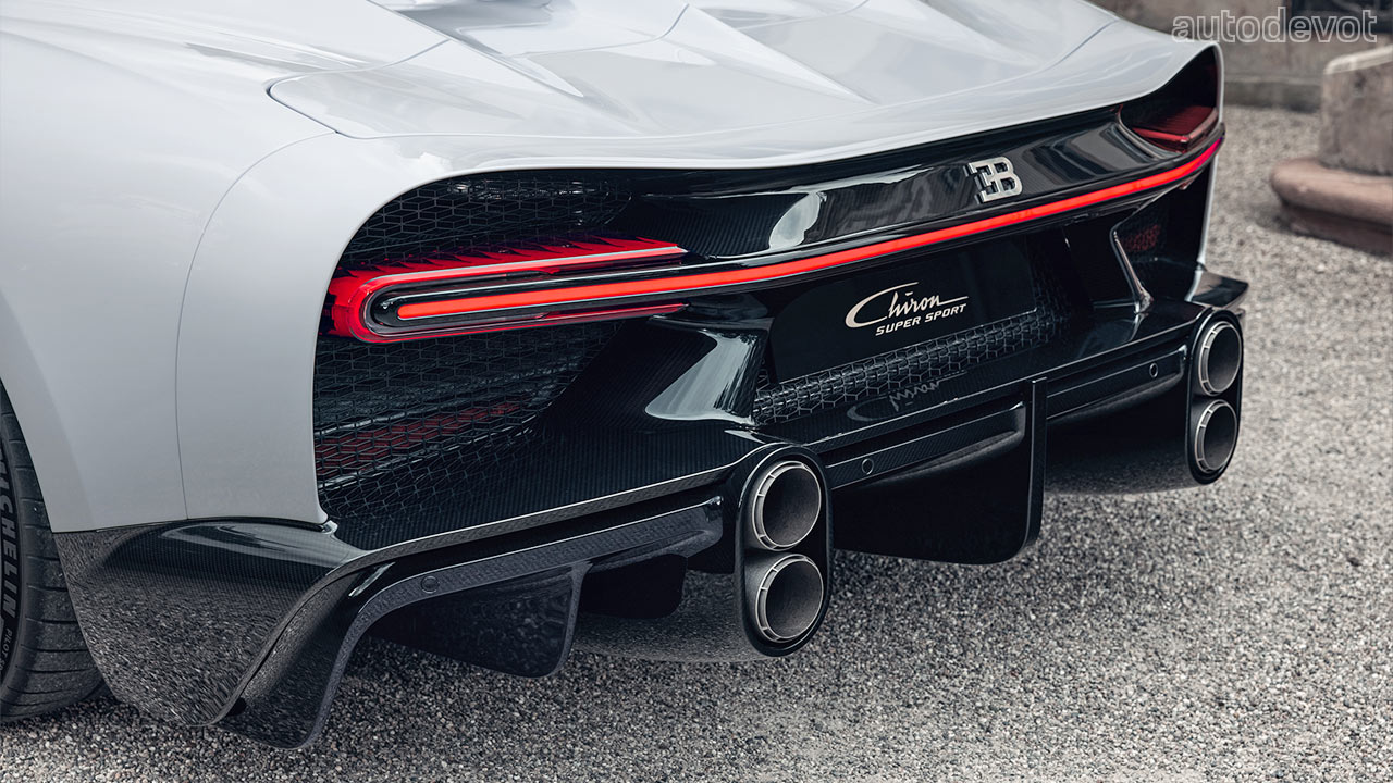 Bugatti says that the uplift forces exerted on the bodywork at 440 km/h (273 mph) are immense and the revised bodywork of the Super Sport generates massive downforce to counter this uplift and perfectly balance the forces. Also, the tailpipes have been mounted vertically not just for the looks, but mainly to make more space for the diffuser.
