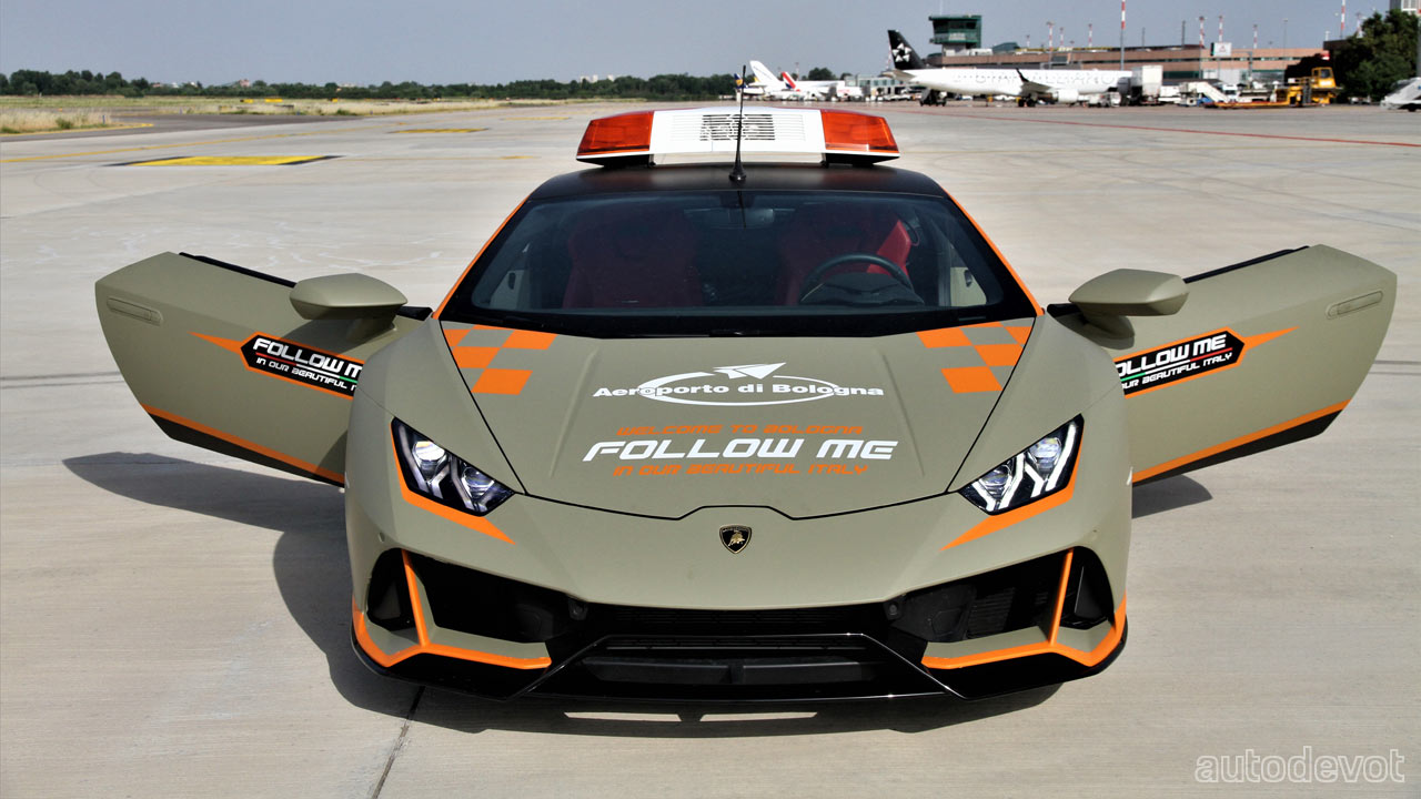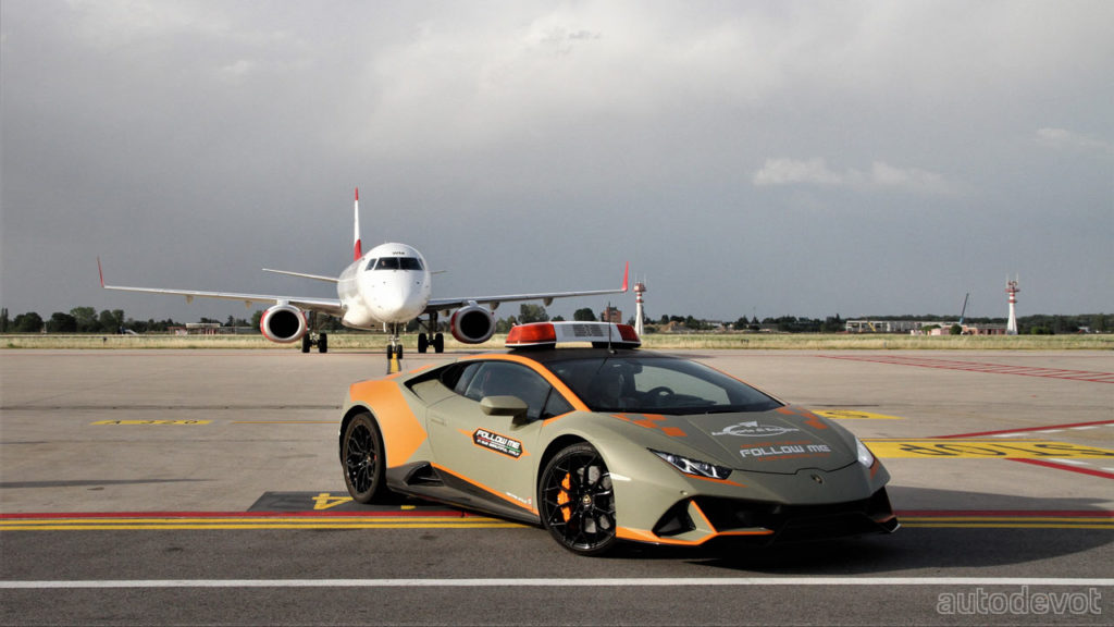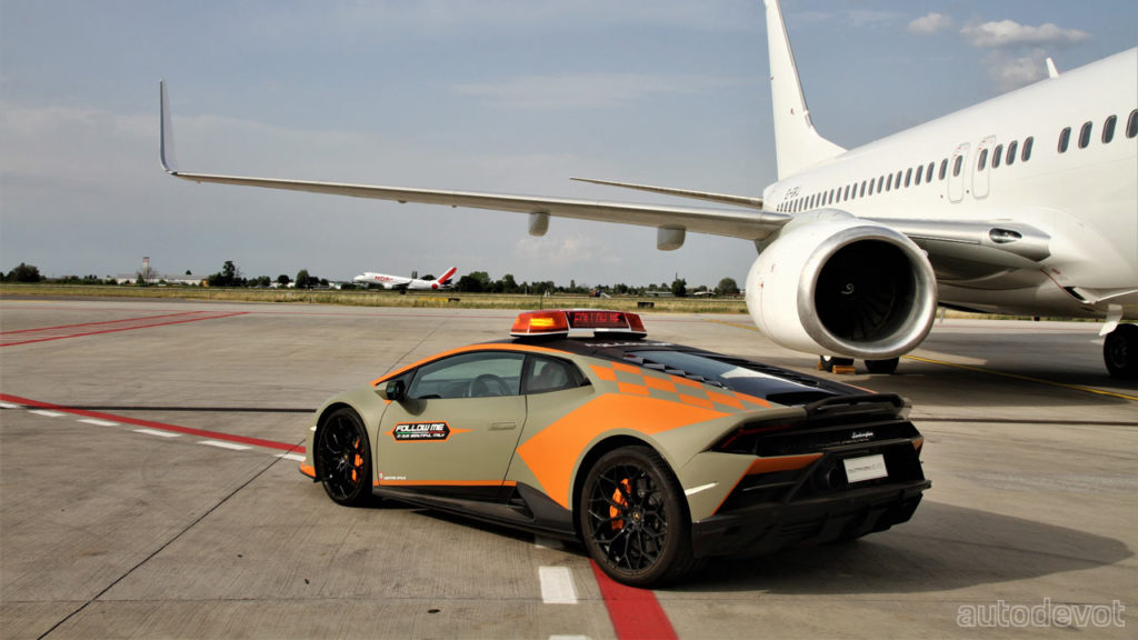 Lamborghini has renewed its partnership with Bologna Guglielmo Marconi Airport for the seventh time, delivering a new follow-me car — a Huracán EVO (AWD), which will guide arriving and departing aircrafts to and from the parking apron and taxiway until January 7, 2022.