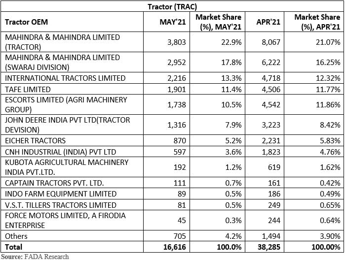 The 2nd wave of covid has left the entire country devastated as there may not be a single household that did not get affected. Apart from urban markets, this time, even rural areas were badly hit. May 2021 saw continued lockdown in most of the states. Not surprisingly, Auto Retail for the month witnessed a bloodbath as sales fell by -55% on a MoM basis. Similarly, all categories of vehicles fell by a huge degree with 2W falling by -53%, 3W by -76%, PV by -59%, Tractors by -57% and CV by -66% respectively.