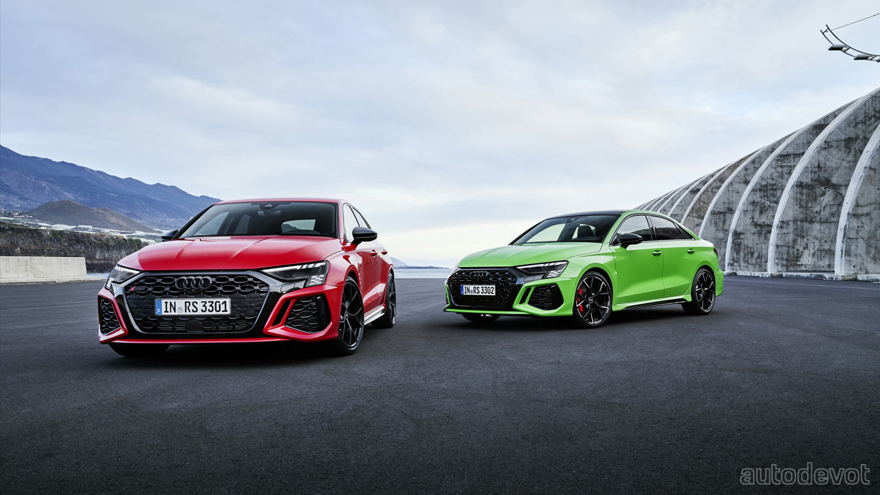 Audi has taken the camouflage off the third-generation RS 3 models (first-gen A3 didn’t have RS 3 variants) which include the Sportback and the Sedan. Both cars will go on sale in European markets this fall, with prices starting at €60,000 for the RS 3 Sportback and €62,000 for the RS 3 Sedan.