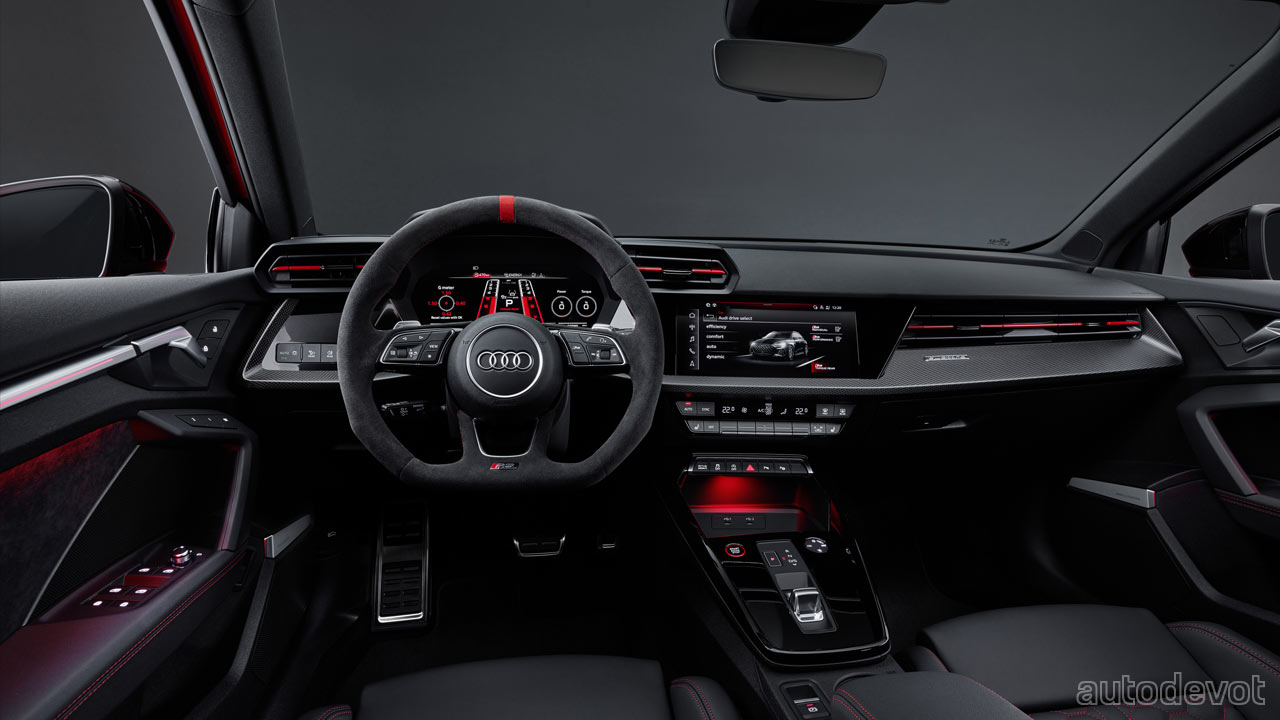 While the RS sports suspension comes standard, buyers can go for the optional RS sport suspension plus with adaptive damper control. The cars ride 10 mm lower than the S3 and 25 mm lower than the A3.