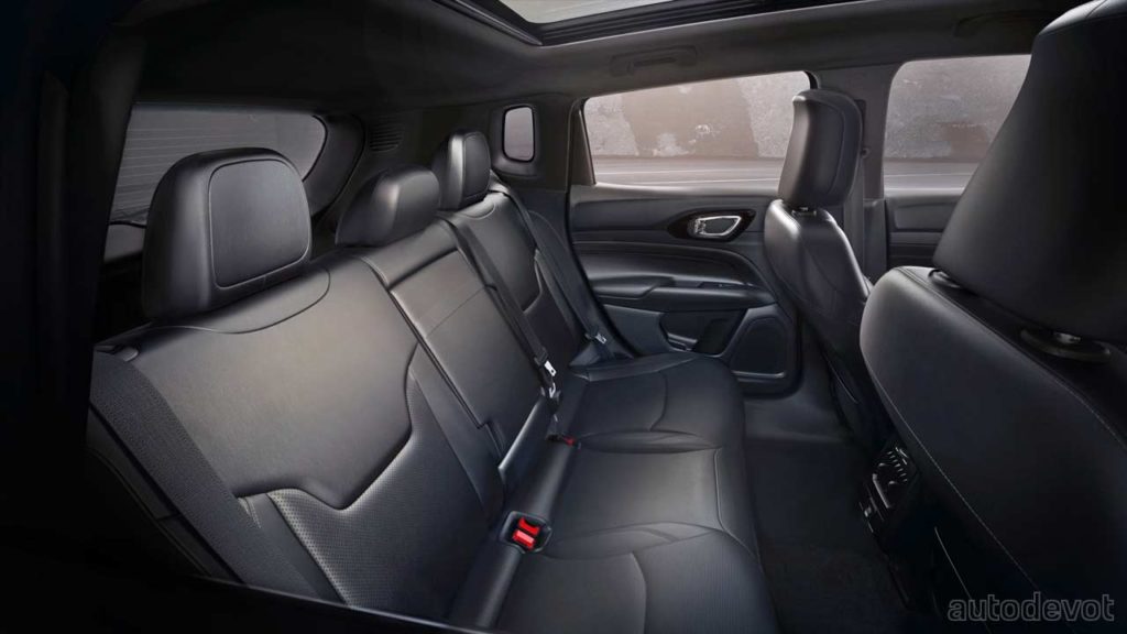 The new dashboard design is also in line with the 2021 Compass facelift for India. A chrome-plated accent that runs the entire length of the dashboard not only adds a premium touch but also seamlessly integrates new slim HVAC vents. Other features include an optional 10.25-inch digital driver display (standard with the High Altitude Package), a 10.1-inch central touchscreen (8.4-inch standard), wireless Apple CarPlay & Android Auto connectivity, and USB ports.
