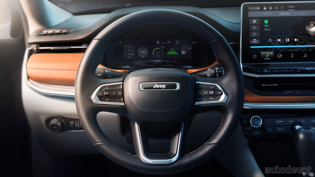 As mentioned, the styling updates are subtle and in line with the 2021 Compass facelift that was revealed for the Indian market earlier this year. There’s a new front bumper design with new fog lamp housing and a larger lower grille. The upper seven-slot grille has also been tweaked but is barely noticeable compared to the outgoing model. There are new LED headlights too. Depending on the trim, the Compass gets up to 19-inch rims. Earl and Bright White are the two new exterior paint options. Jeep also said that it has tweaked the suspension for smoother ride and handling, and so is the steering wheel for improved on-road responsiveness.